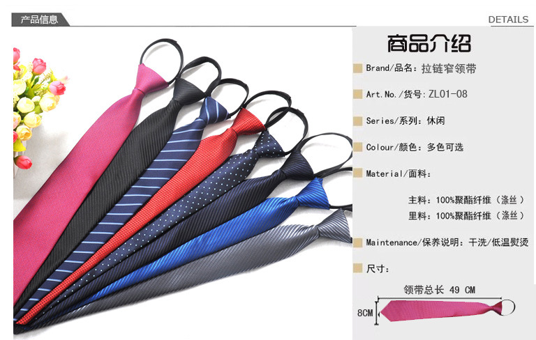 Men's professional tie 8CM with zipper, lazy tie, easy-pull tie, work uniform shirt