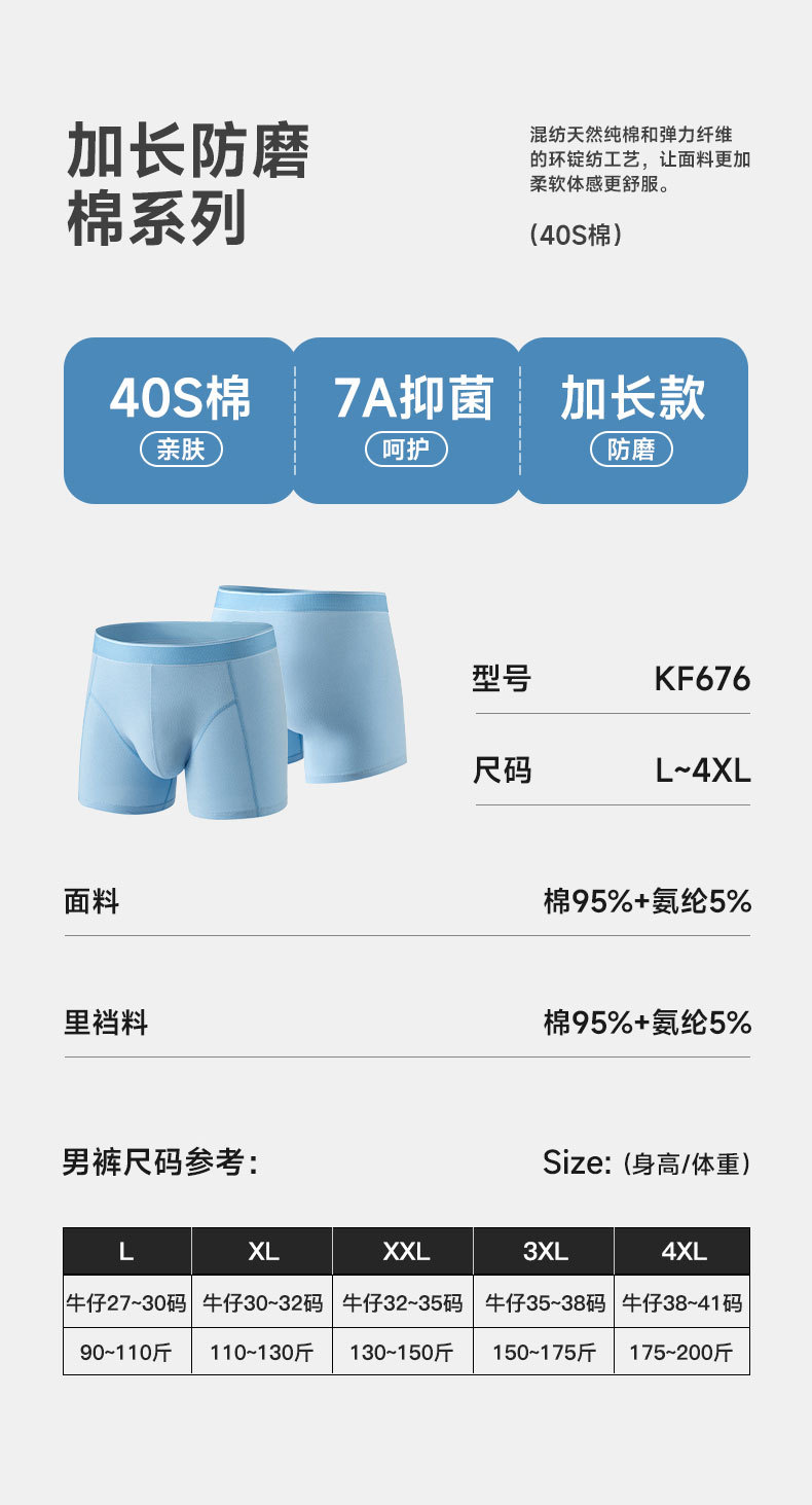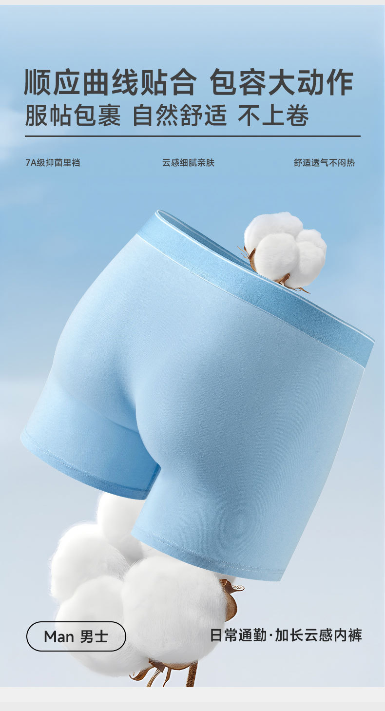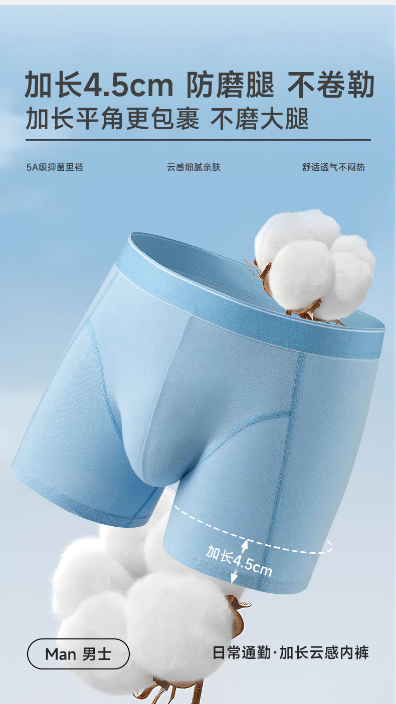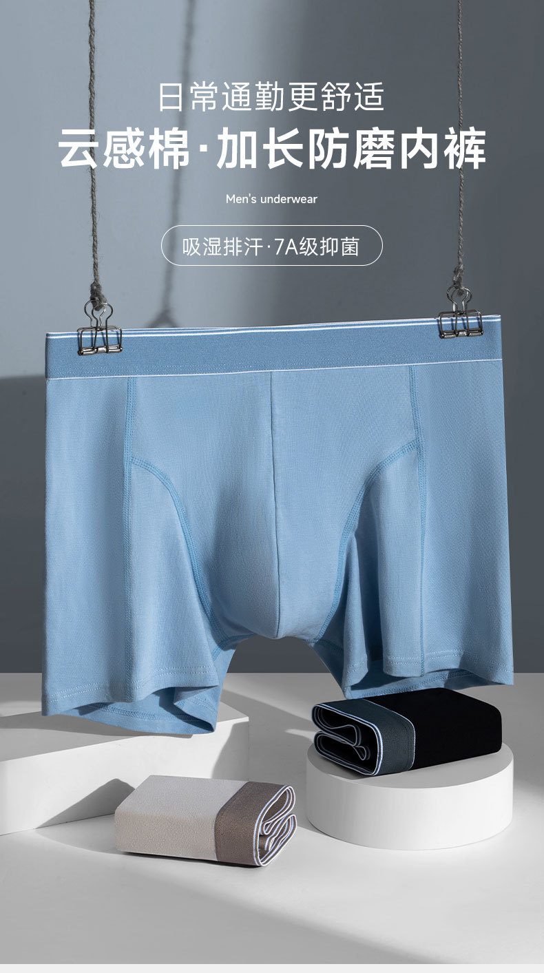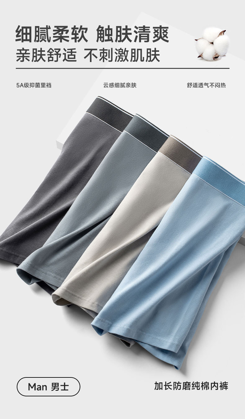 Men's pure cotton extended sports anti-abrasion underwear 10A antibacterial crotch mid-waist breathable underwear Men's boxer shorts