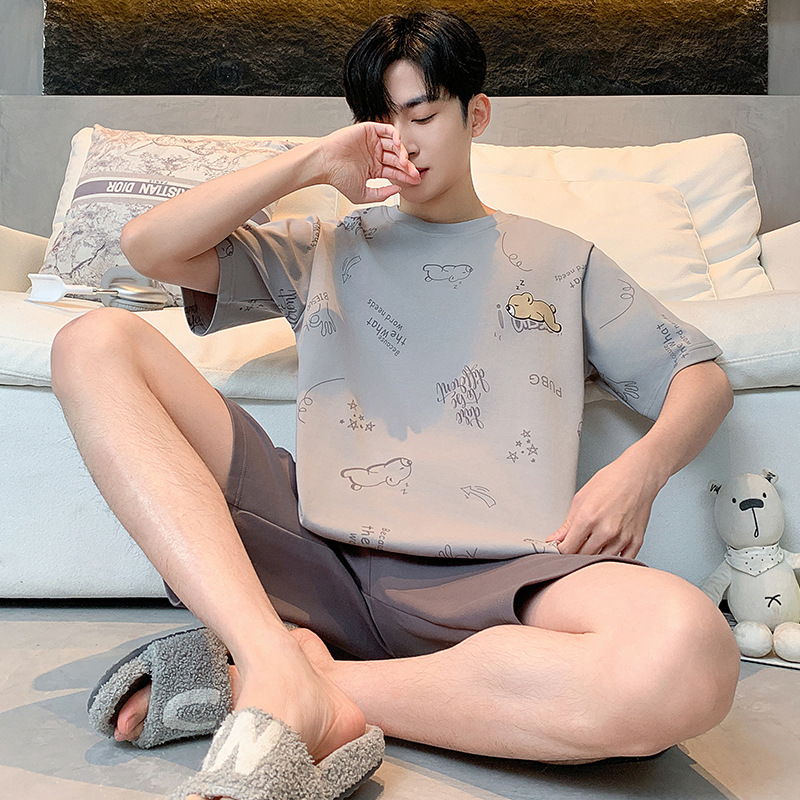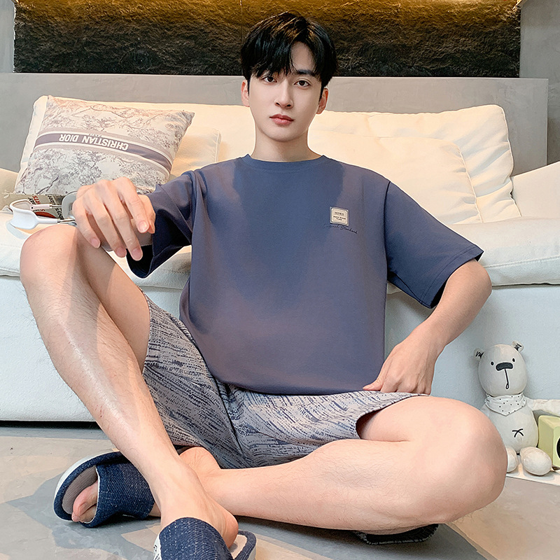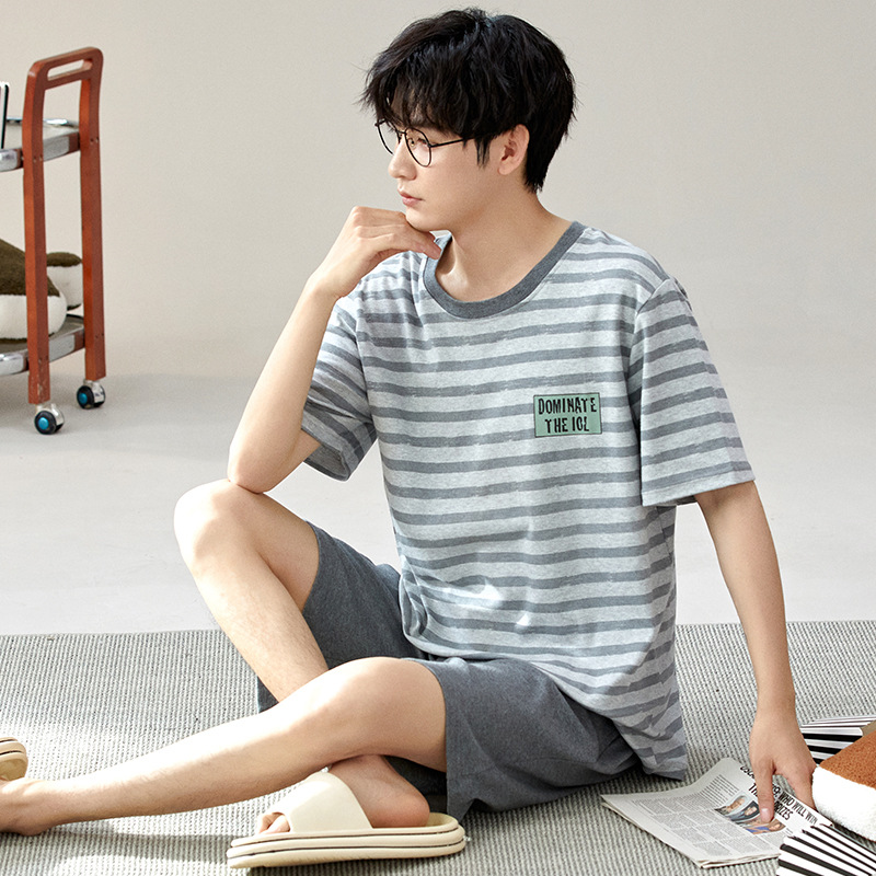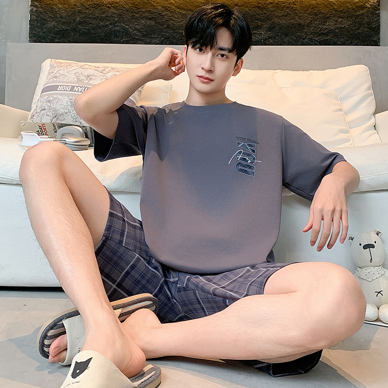 Men's pure cotton pajamas, summer short-sleeved casual wear that can be worn outside, 2025 new men's large-sized home wear, thin set