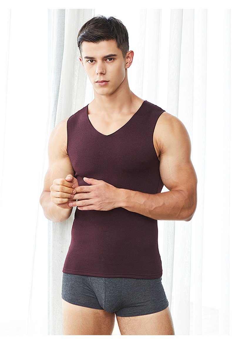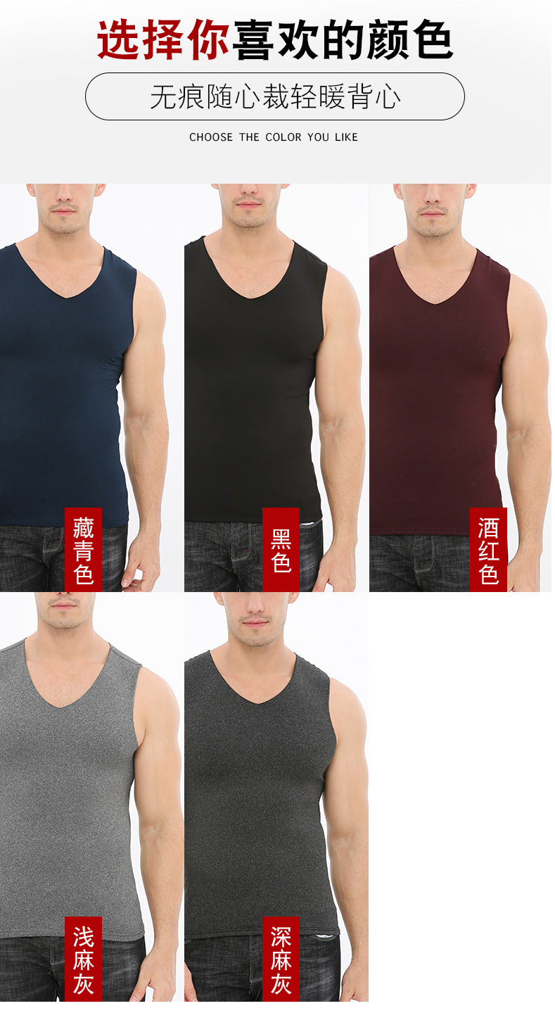 Men's seamless thermal vest with fleece quick-heating thin solid color custom-cut vest, sent by 37 De thin fleece manufacturer