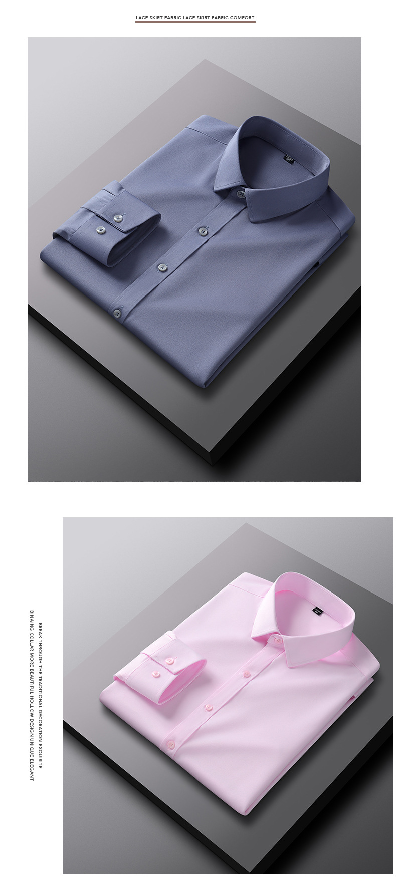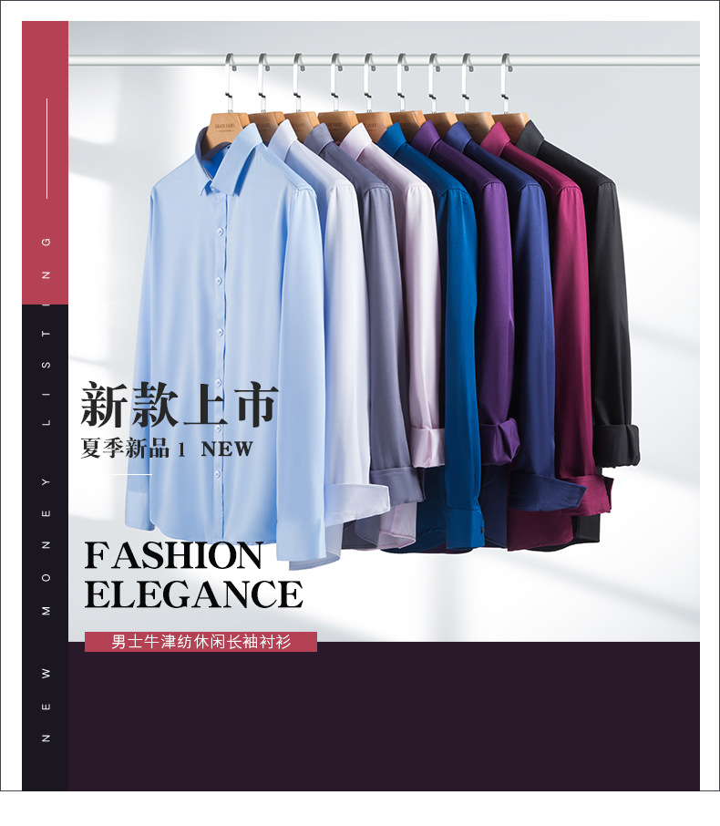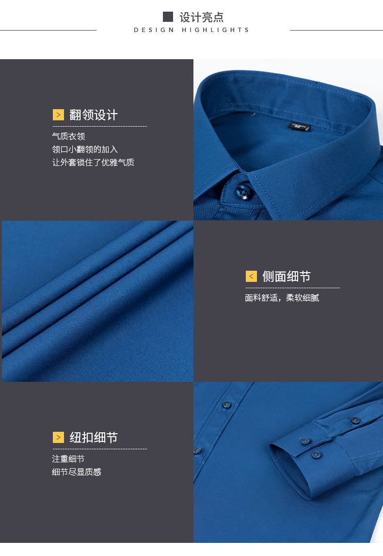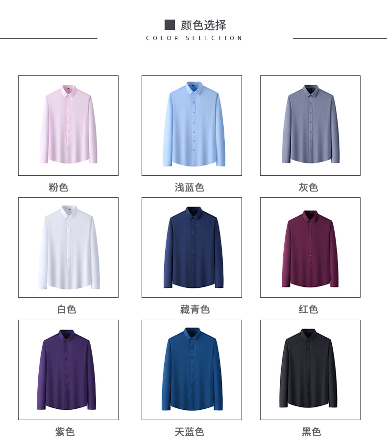 Men's shirt solid color four-sided stretch shirt, no ironing, slim fit, spring and autumn long-sleeved shirt without pockets, custom-made long-sleeved