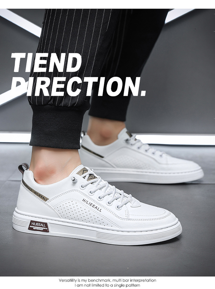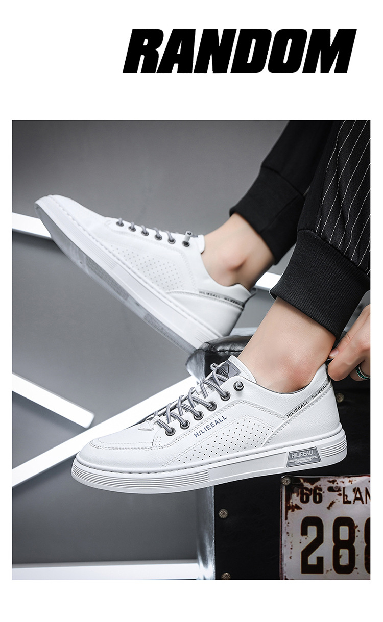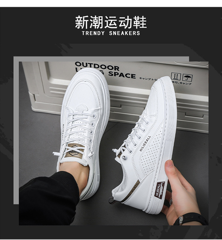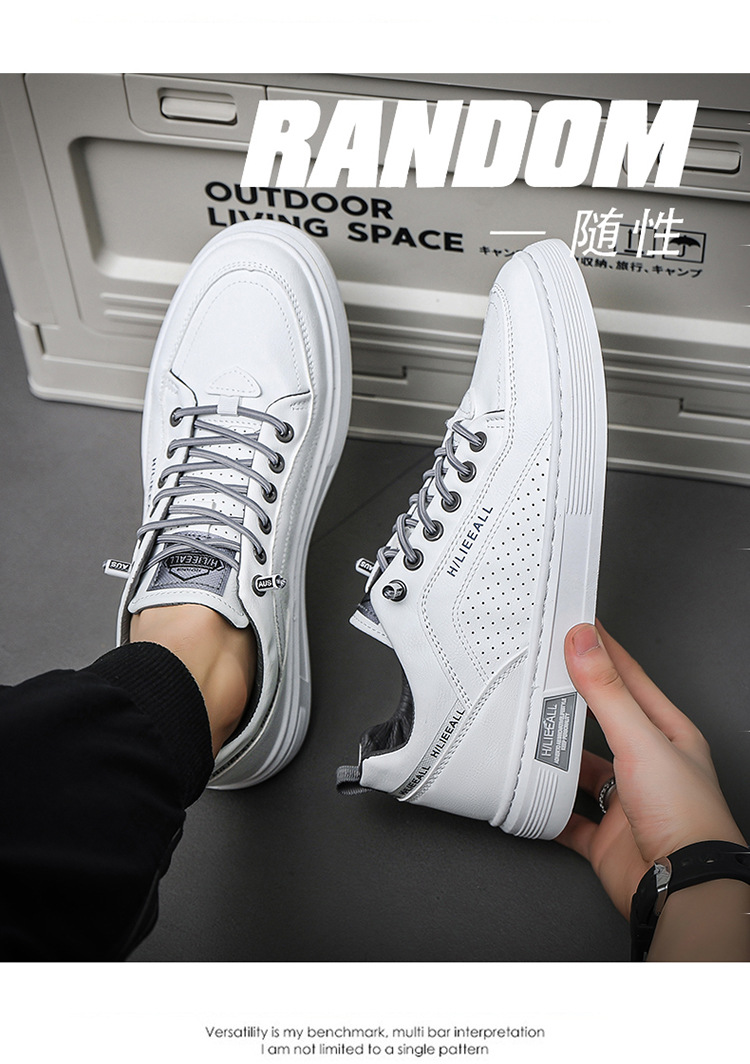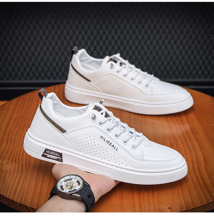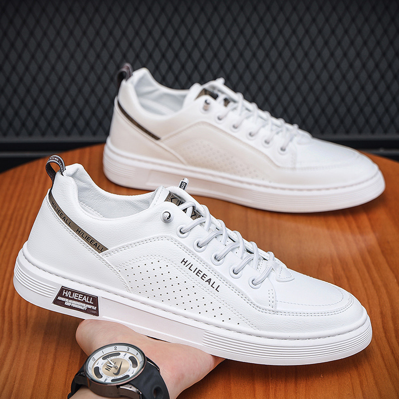 Men's shoes: Spring and autumn breathable and versatile casual white sneakers, trendy high-end men's leather shoes, lightweight and sporty white sneakers