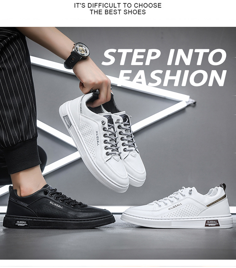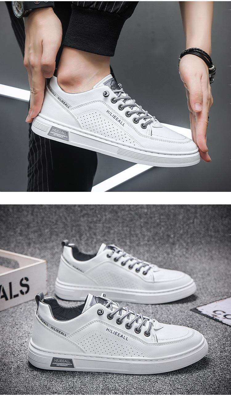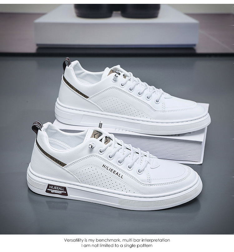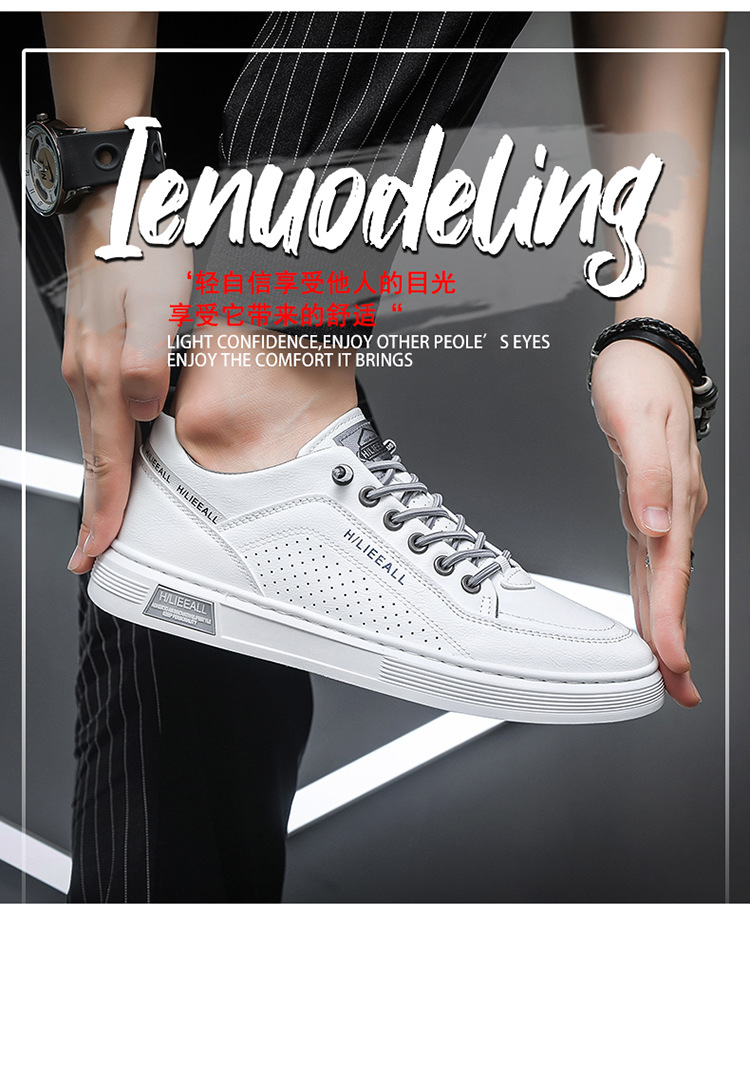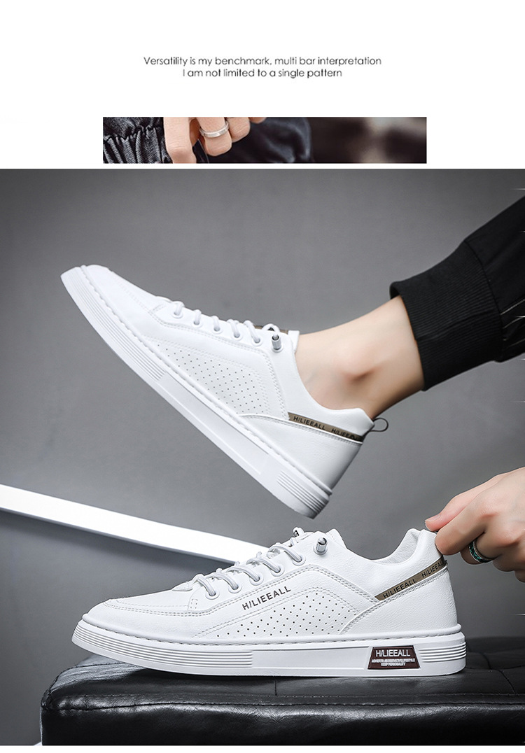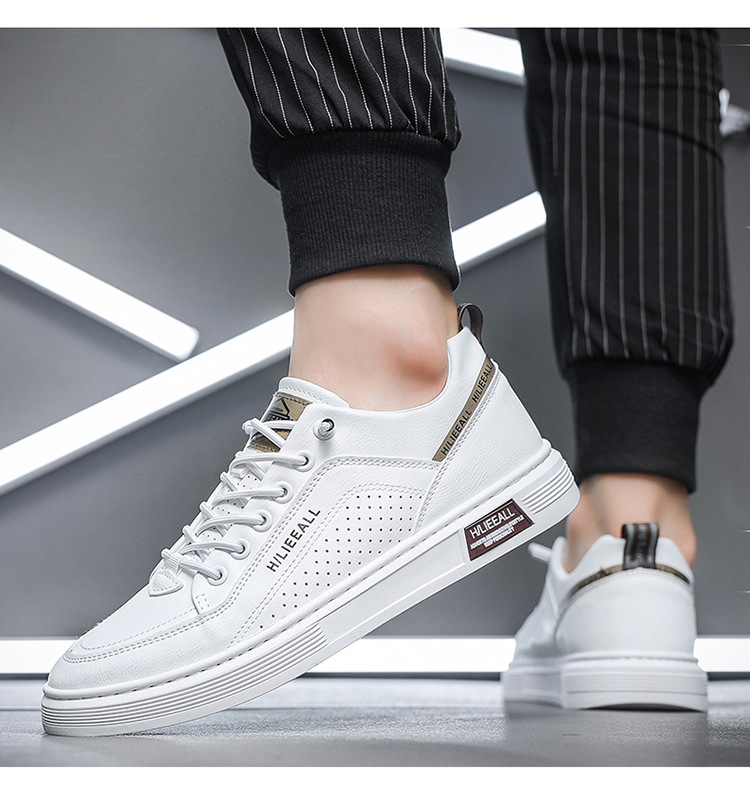 Men's shoes: Spring and autumn breathable and versatile casual white sneakers, trendy high-end men's leather shoes, lightweight and sporty white sneakers