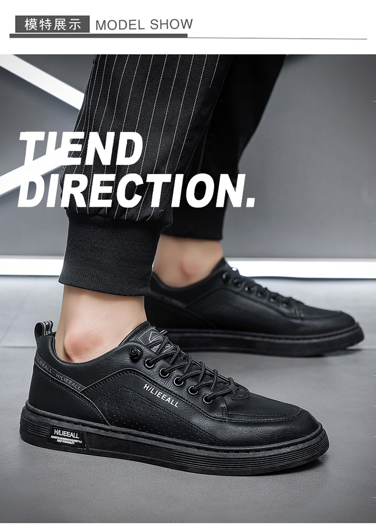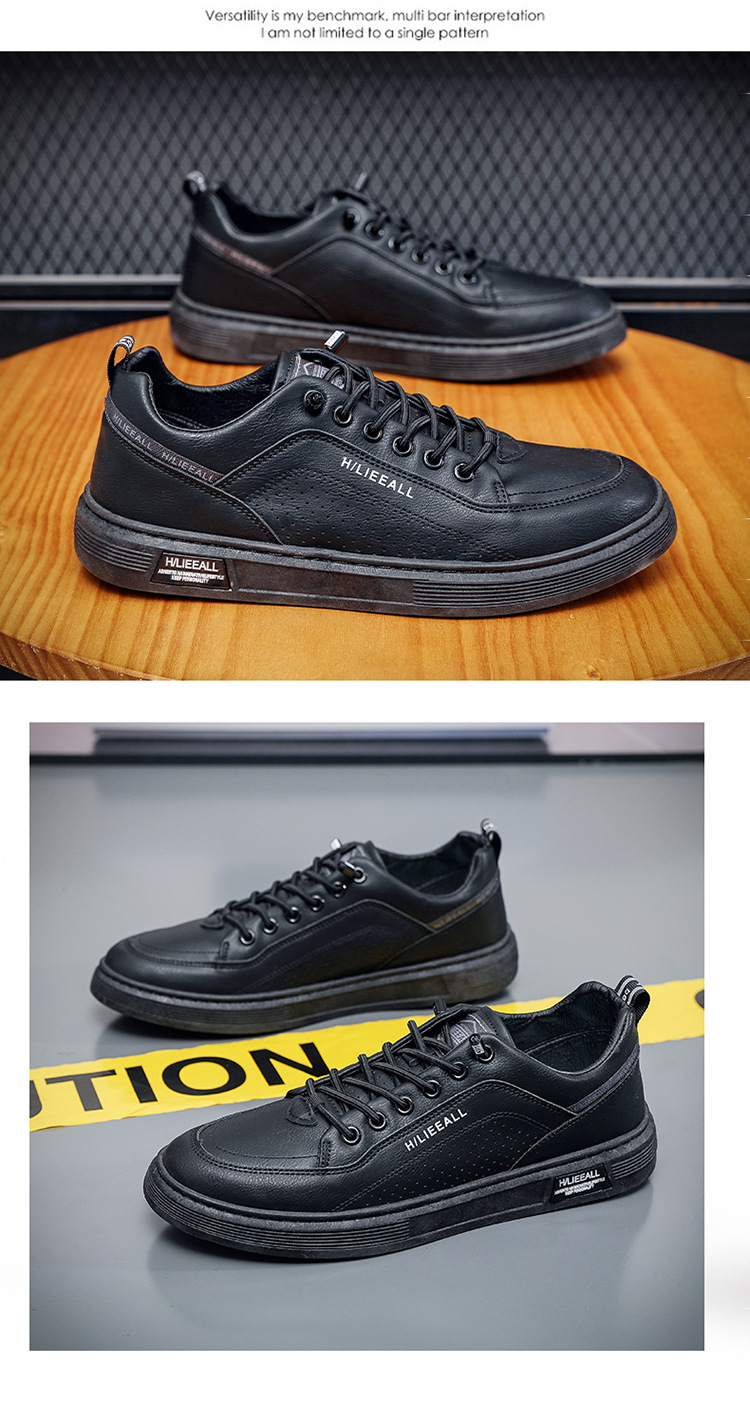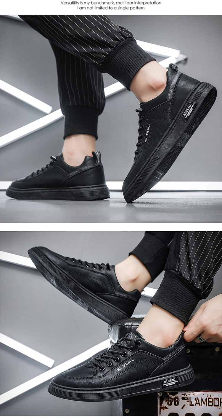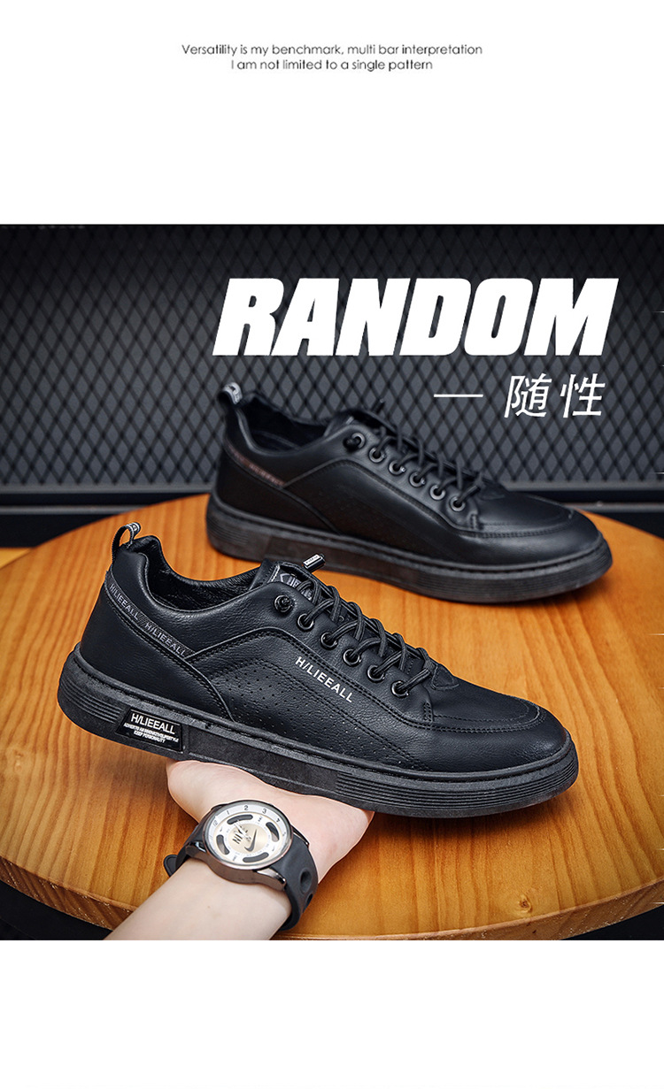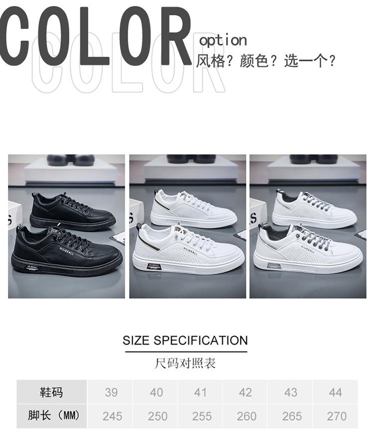 Men's shoes: Spring and autumn breathable and versatile casual white sneakers, trendy high-end men's leather shoes, lightweight and sporty white sneakers