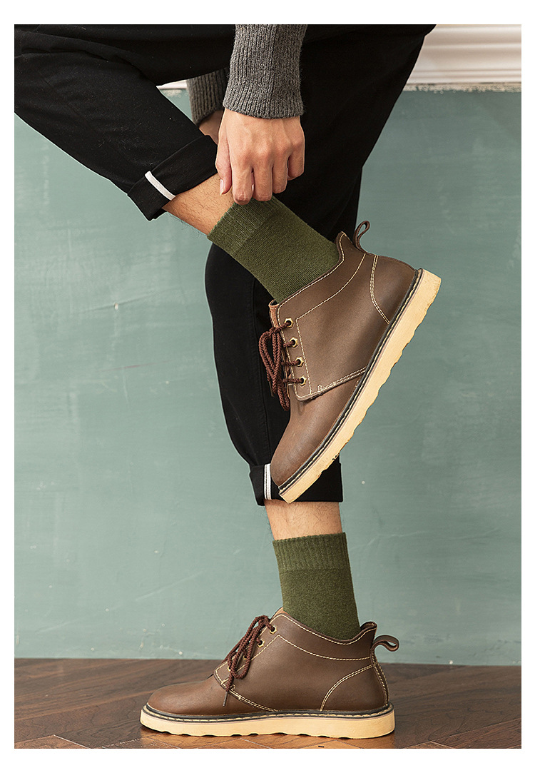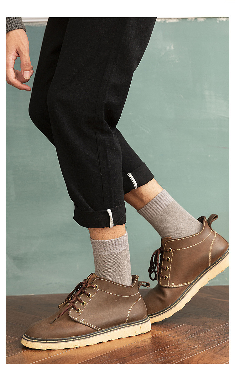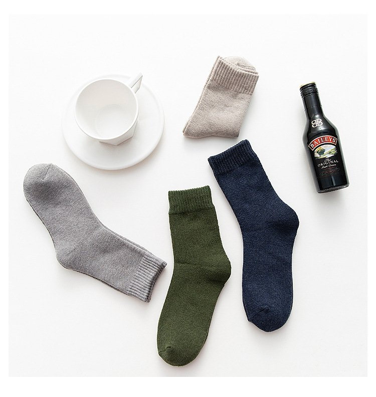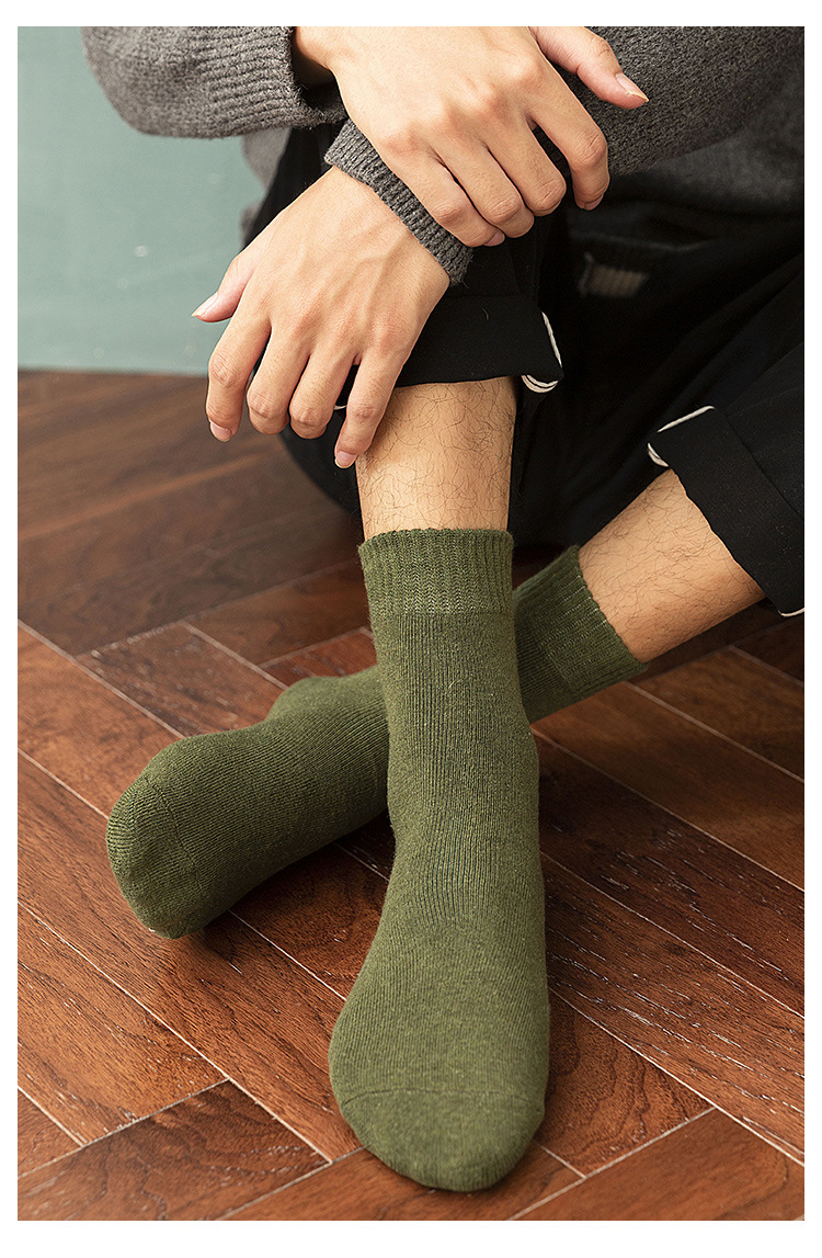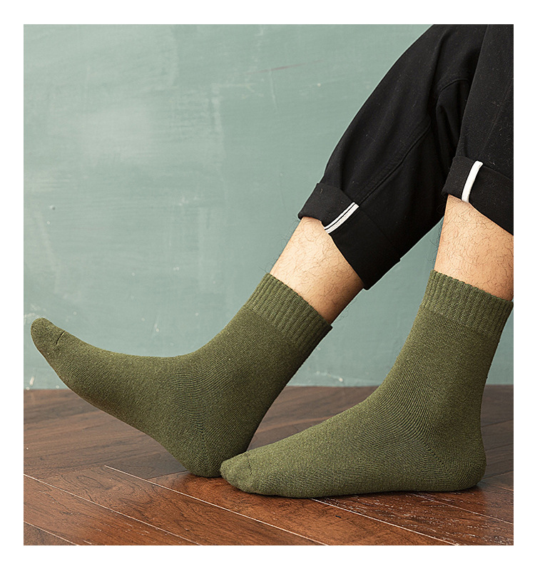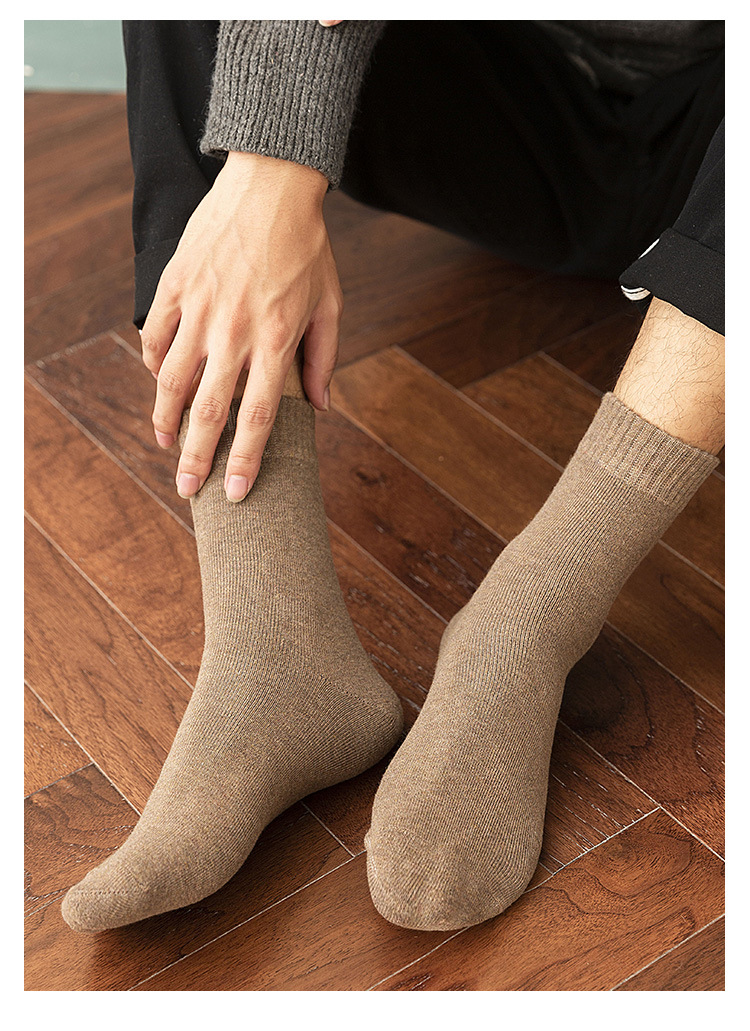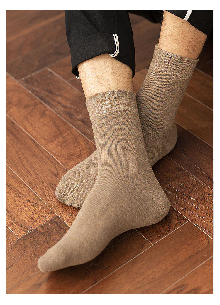 Men's socks for autumn and winter, warm cotton socks, breathable mid-calf socks, business and casual men's socks, solid-color loop socks, hair replacement