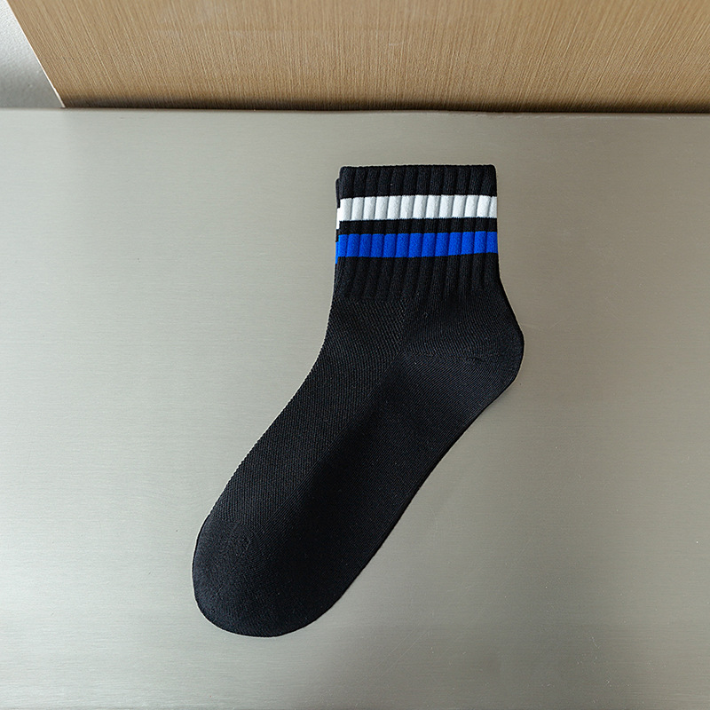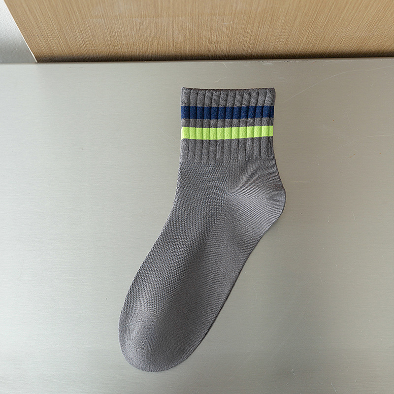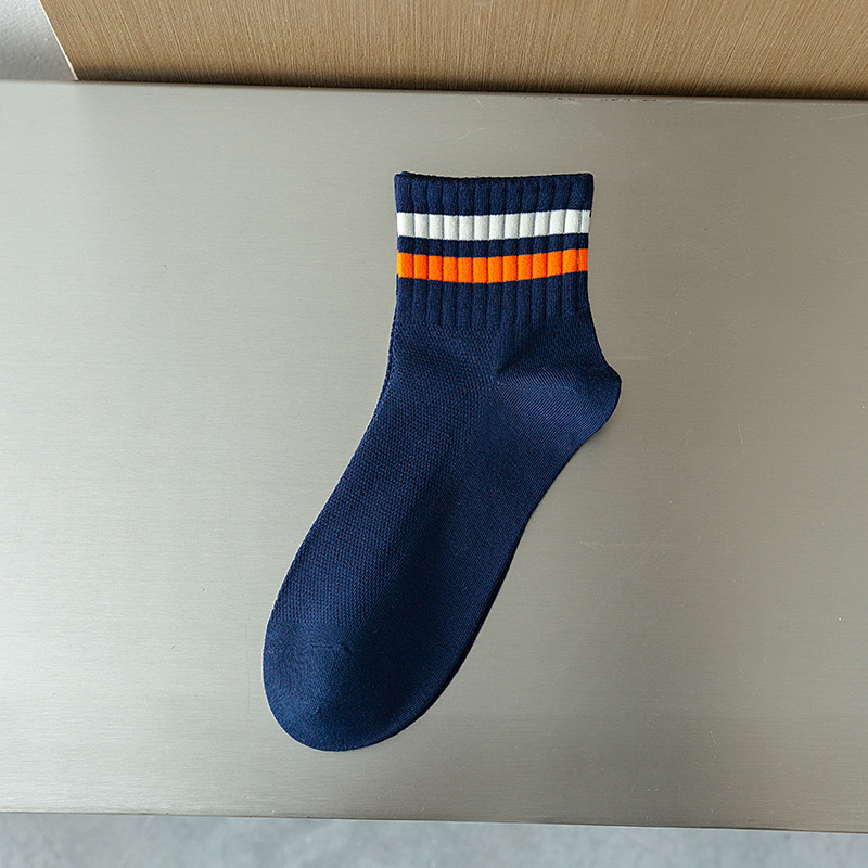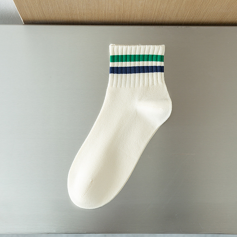 Men's socks Spring/Summer 2024 new short socks, two-bar striped casual socks, combed cotton sweat-absorbing and breathable sports socks