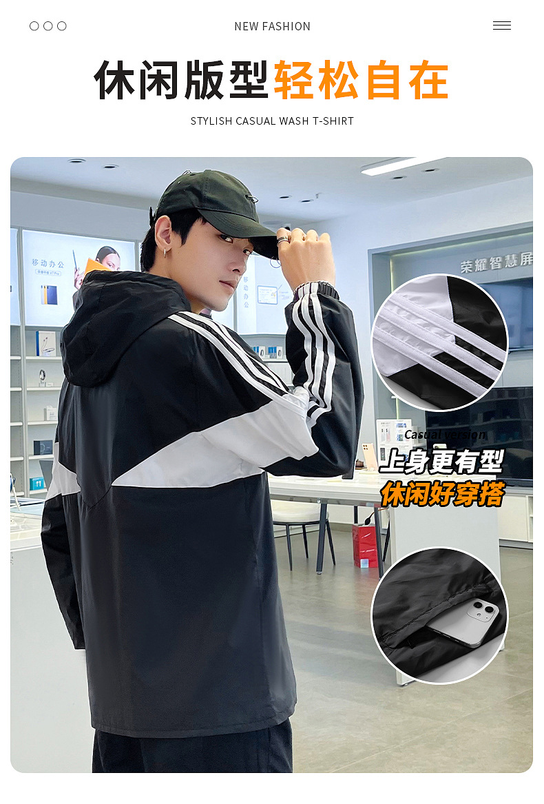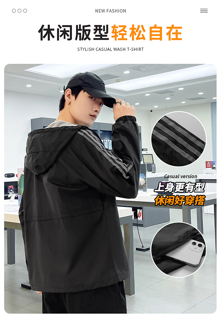 Men's sports windbreaker 2023 Spring/Autumn loose work jacket, large-sized hooded cardigan for middle-aged and young people, casual jacket