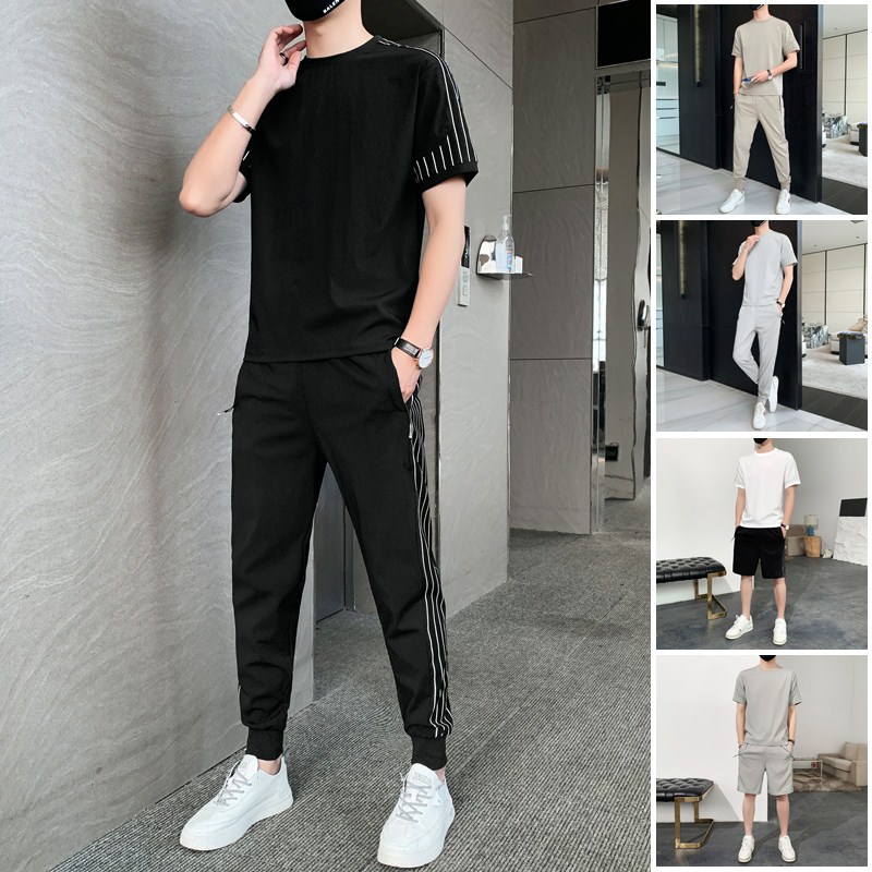 A men's ice silk thin 2022 summer new casual set, a two-piece men's short-sleeved T-shirt with an ice feel