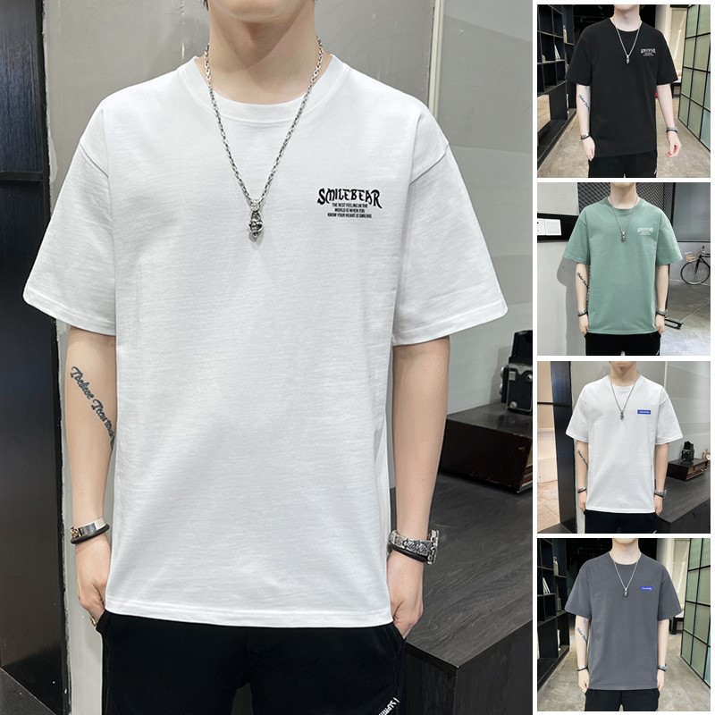 Short-sleeved T-shirts for men in summer, loose-fitting and thin men's pure cotton T-shirt half-sleeved top with a cool summer feel