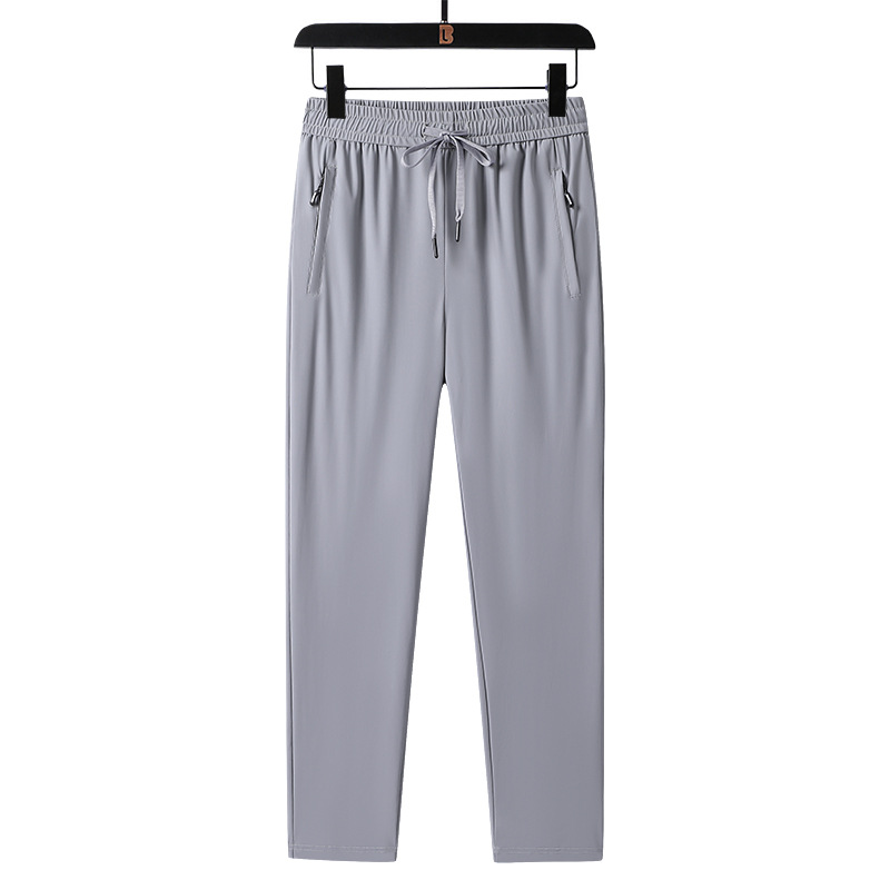 Men's summer ice silk stretch long pants, thin quick-drying pants, casual pants, loose large-sized air-conditioned sports pants for men