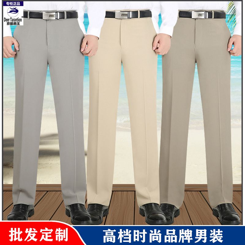 Men's summer no-iron business casual men's trousers, high-waisted loose suit men's trousers, trousers manufacturer