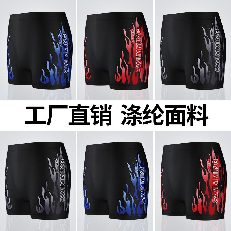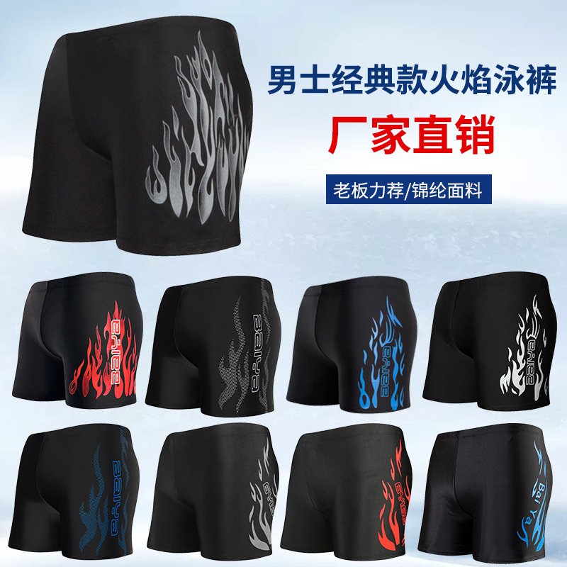 | Men's swimming trunks to prevent embarrassment, men's swimwear fashion, flat-angle flame nylon plus-size hot spring swimming shorts factory wholesale |