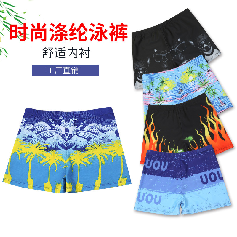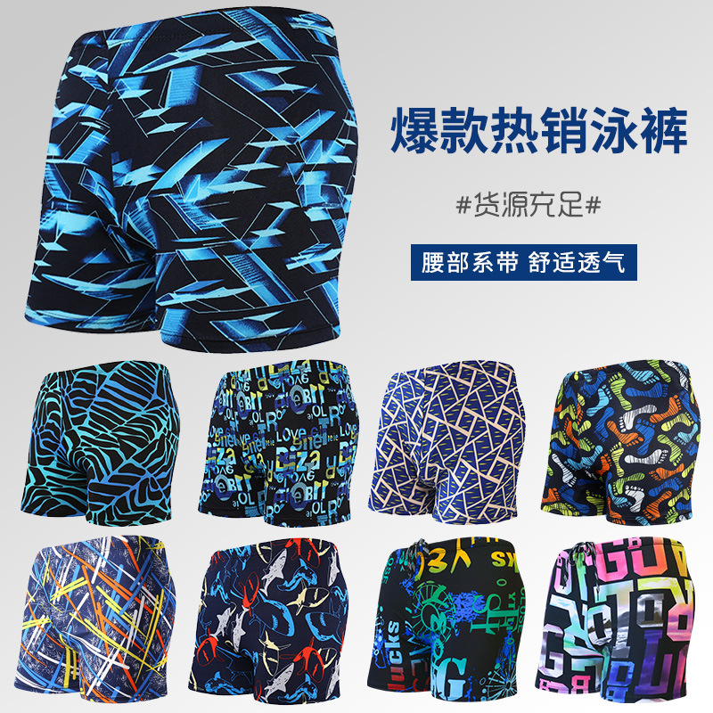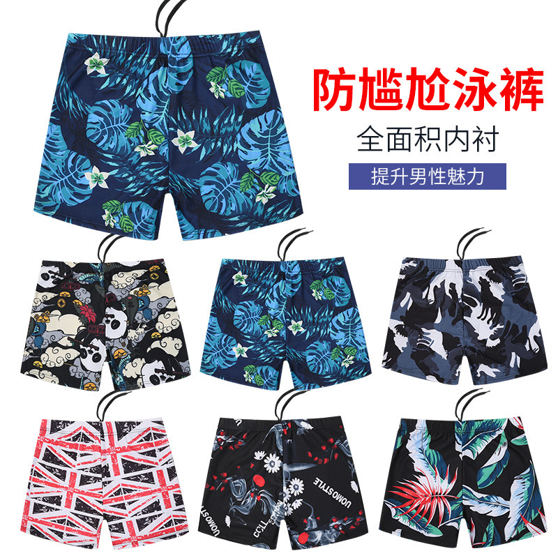| New printed swimming trunks manufacturer wholesale men's large-sized anti-embarrassment, comfortable, breathable, hot spring swimming briefs |