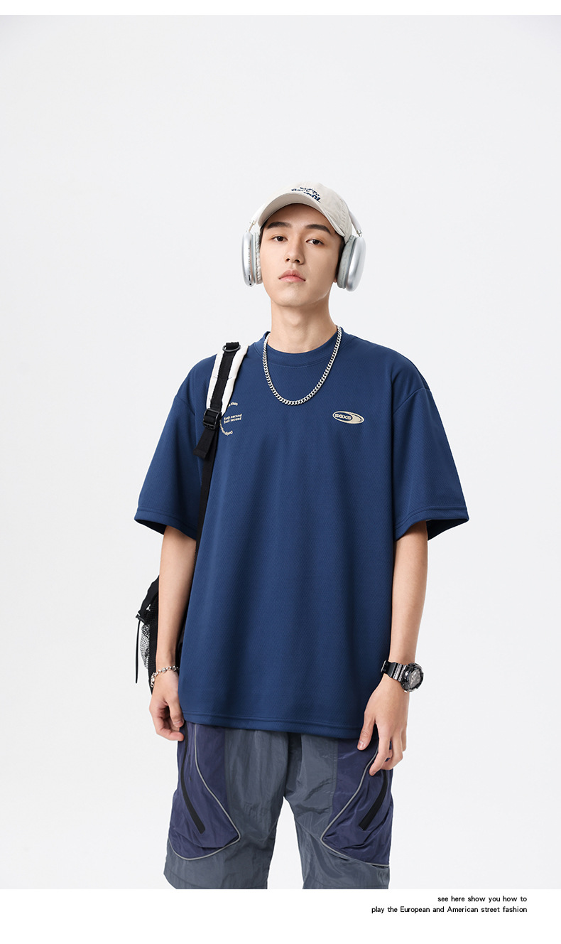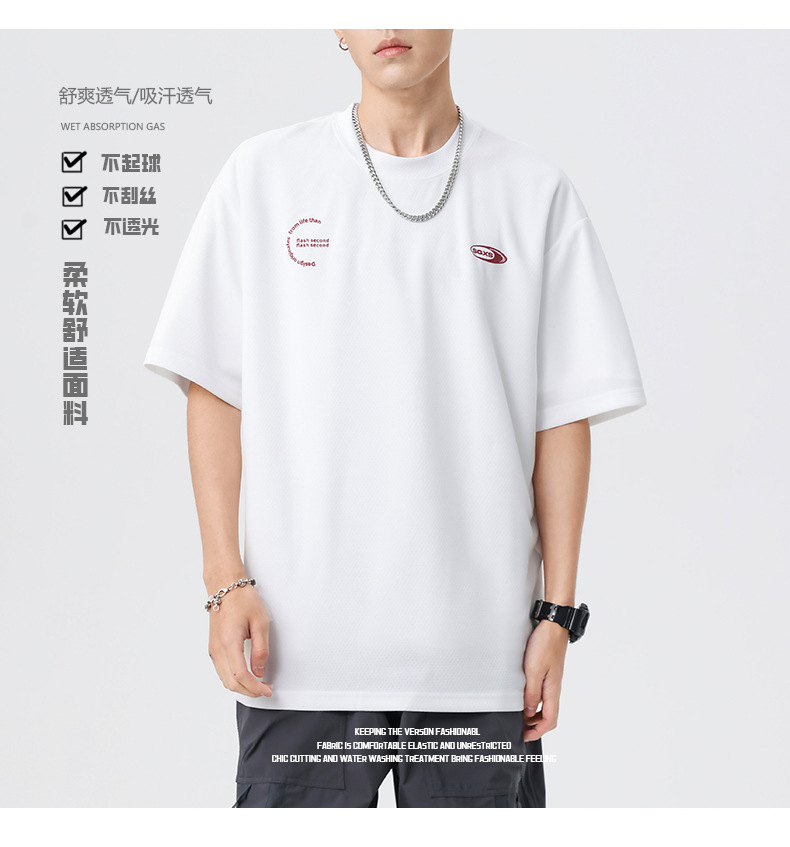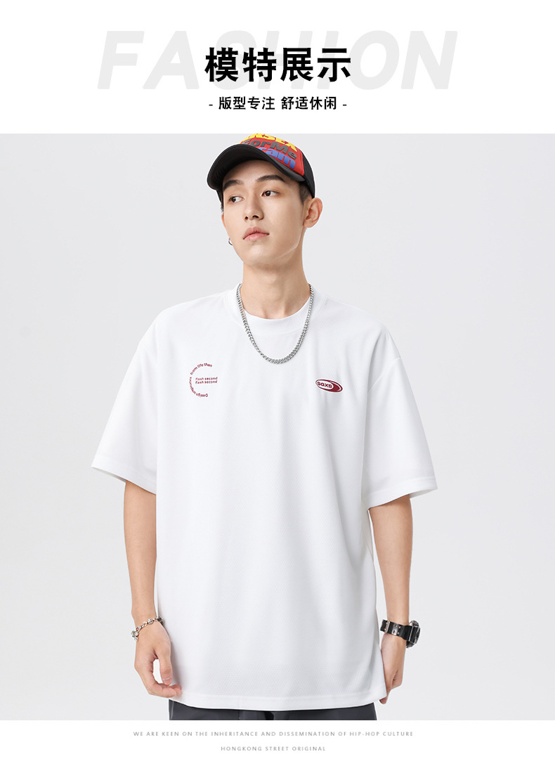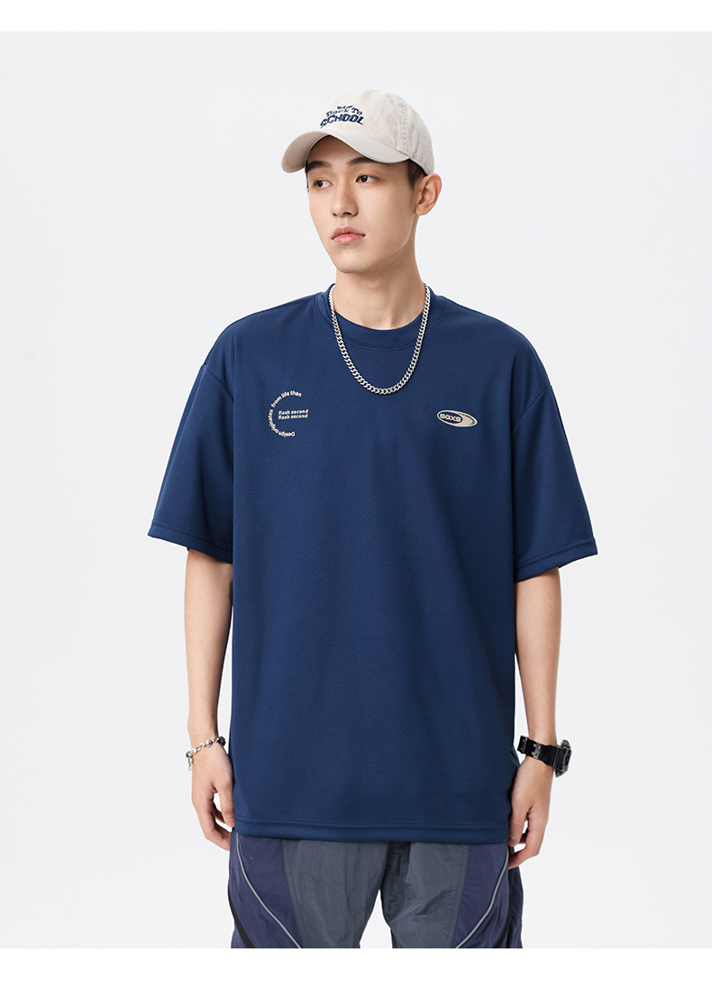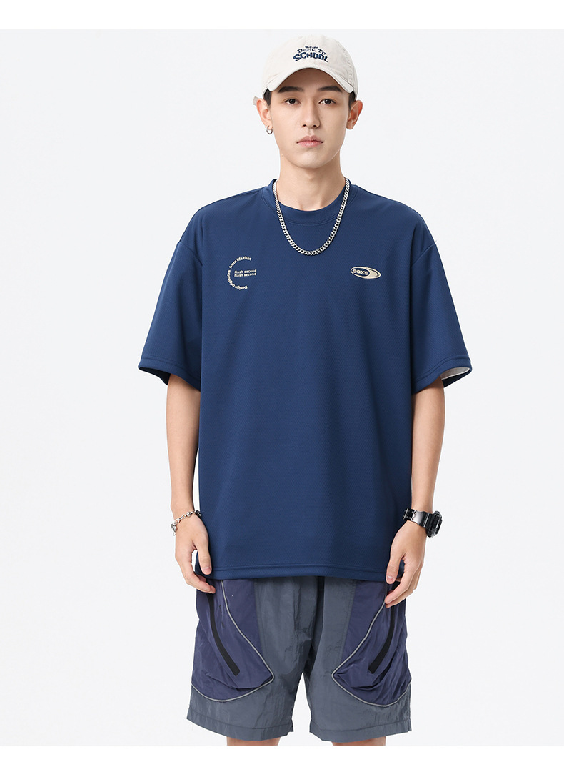 Men's wear: Summer ice silk breathable mesh short-sleeved T-shirt for men, a trendy brand with letter-printed half-sleeved base layer for men