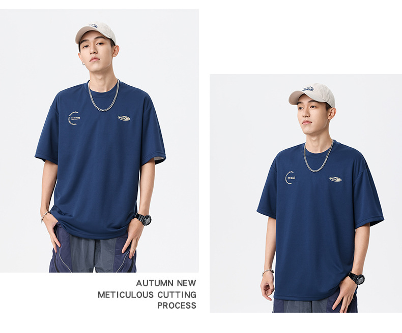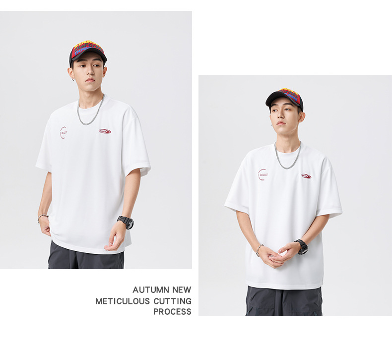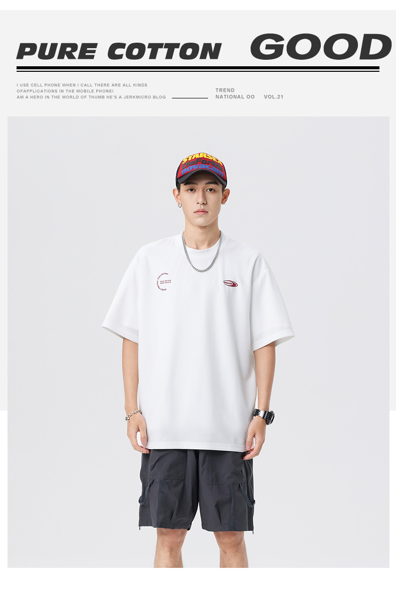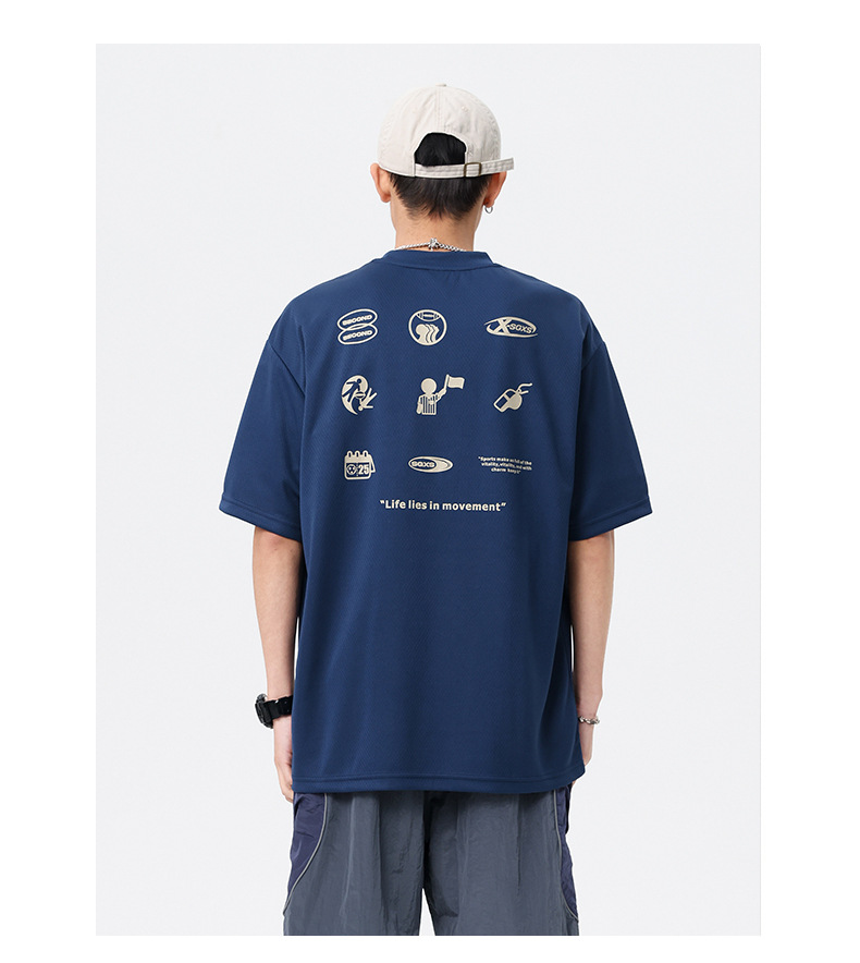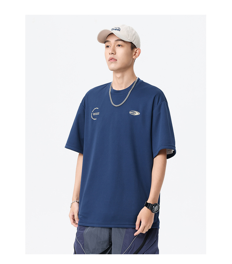 Men's wear: Summer ice silk breathable mesh short-sleeved T-shirt for men, a trendy brand with letter-printed half-sleeved base layer for men
