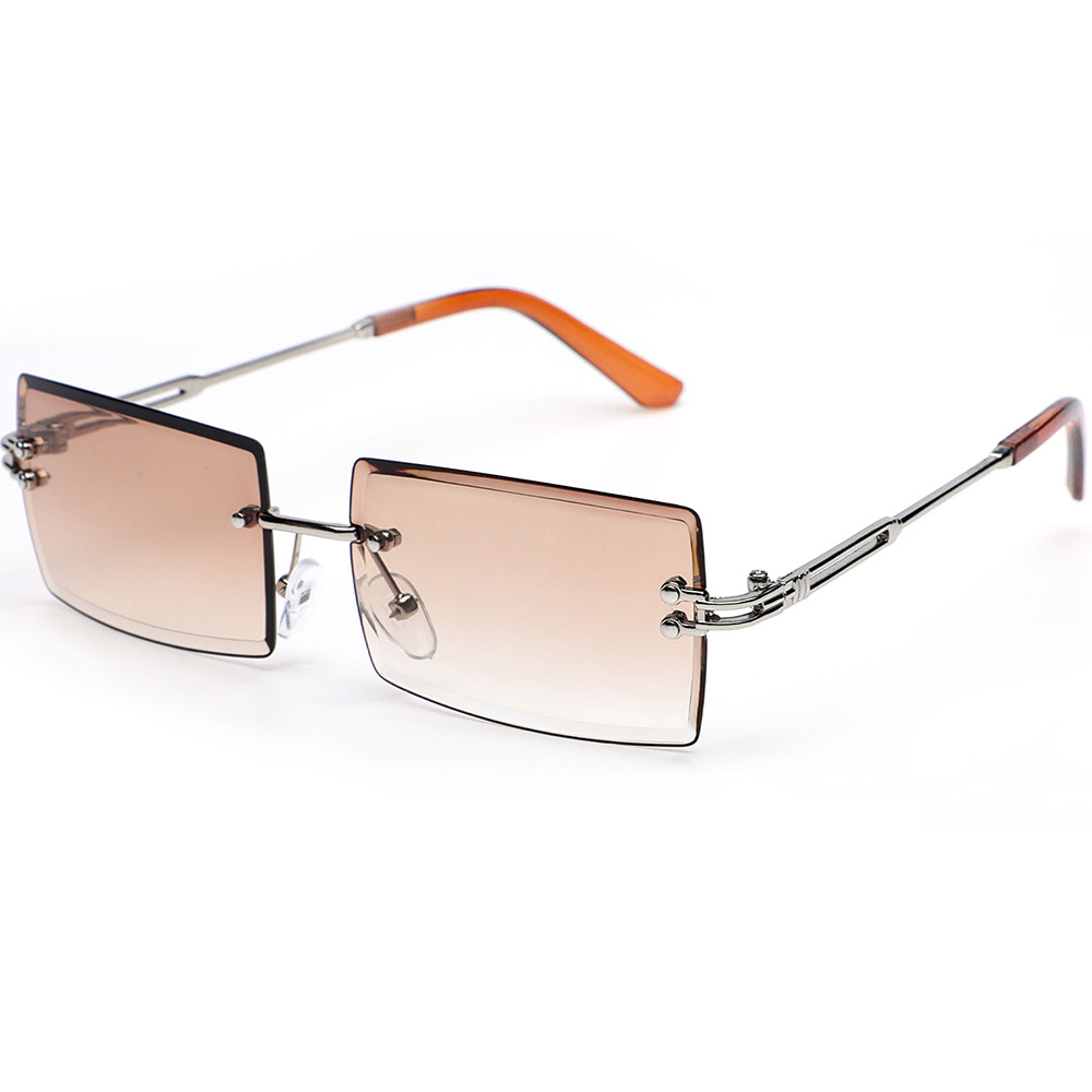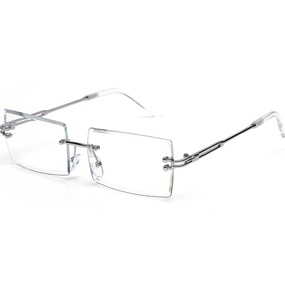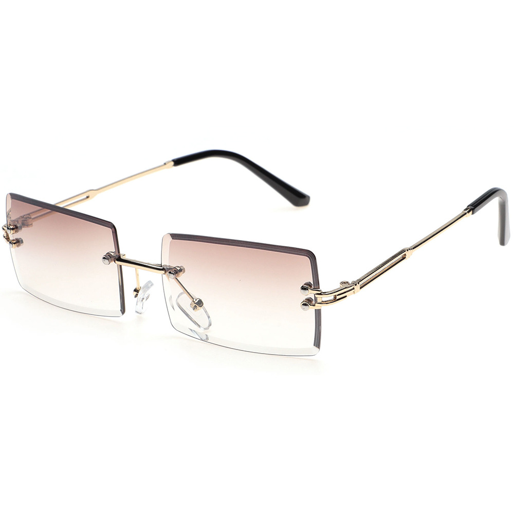 Metal frameless sunglasses, women's wholesale glasses, fashionable European and American square frame ultra-light men's glasses, sun protection sunglasses