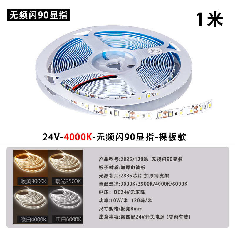Flicker-free 90 display -24V-SMD-120 beads - thick board -4000K- bare board light strip