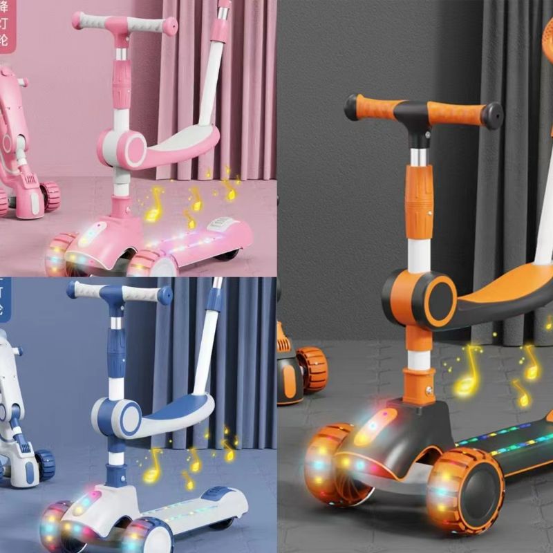 Michael's skateboard comes with a seat and pusher
