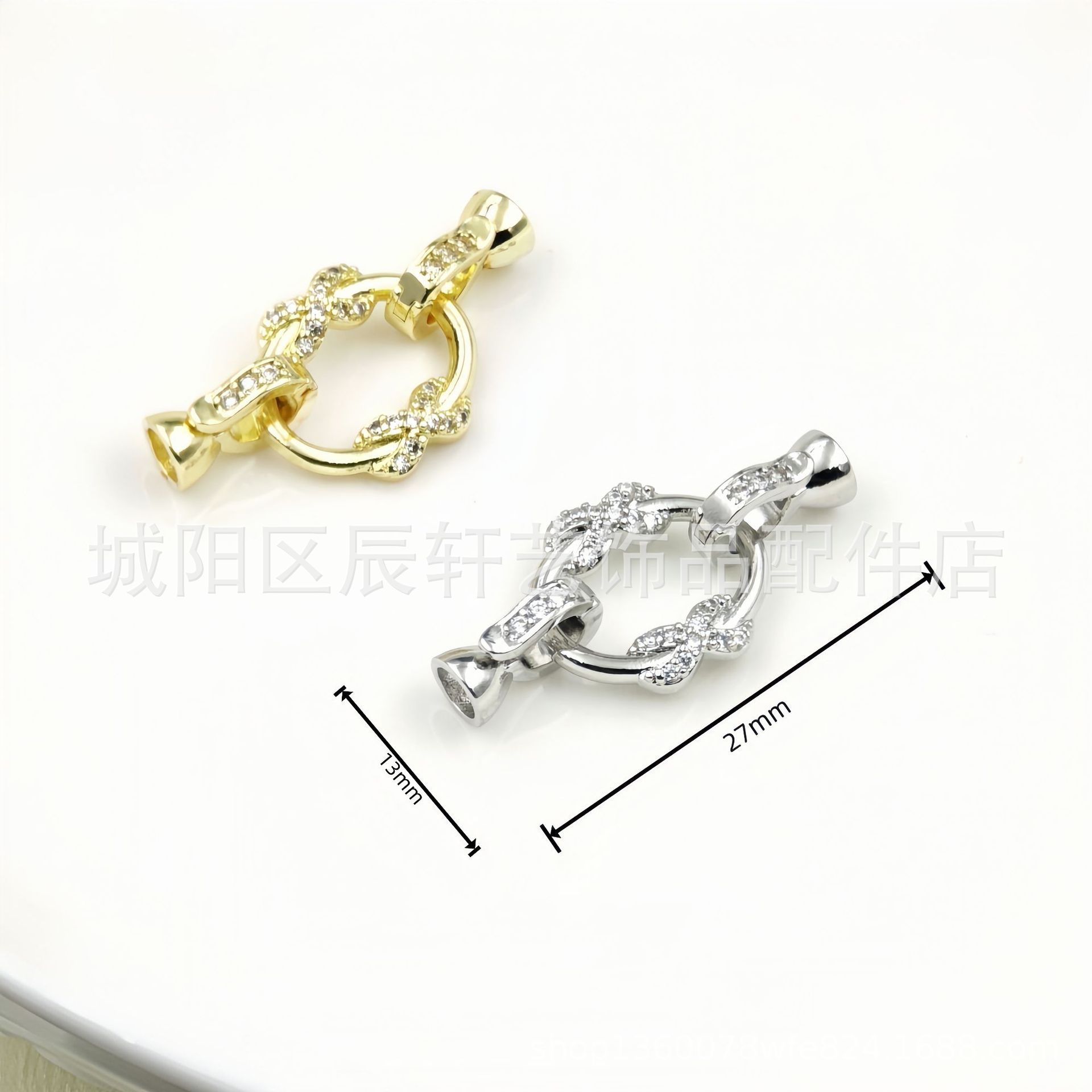 Micro-inlaid T-shaped zircon 18K gold-plated color retention double-ring pearl buckle bracelet, sweater necklace, camellia diy accessory matching
