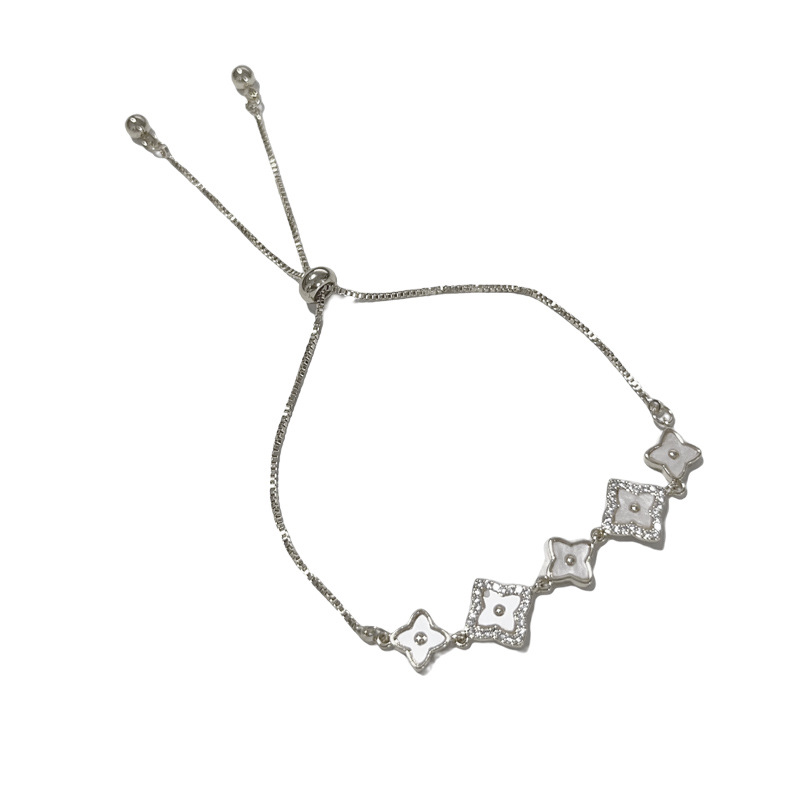 Micro-inlaid zircon shell petal adjustable pull-out bracelet for women, a niche and light luxury design accessory wholesale