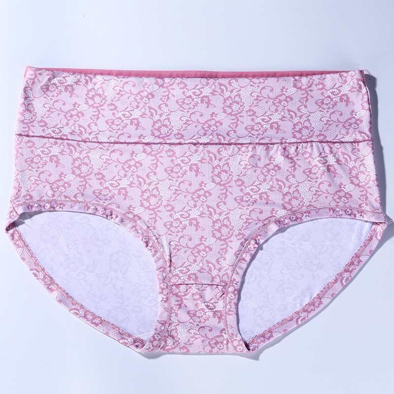 Middle-aged and elderly large-sized women's printed triangle pants, milk silk, comfortable and breathable, hip-hugging mid-waist underwear for aunties