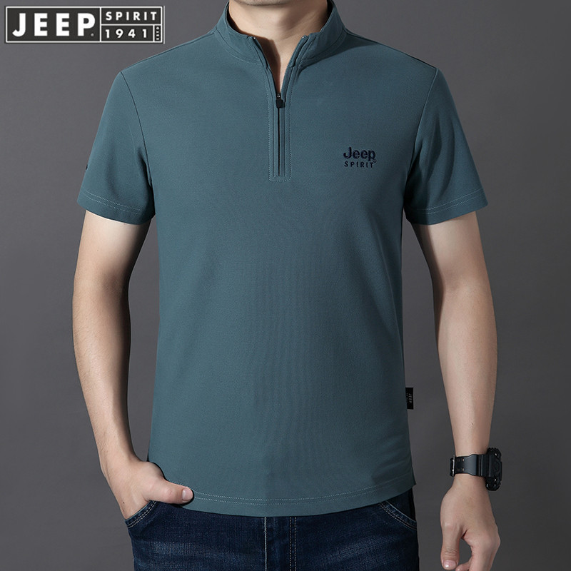 # Middle-aged short-sleeved T-shirt for men, spring and summer business fashion, slim lapel solid color mature stand-up collar short-sleeved POLO shirt trend