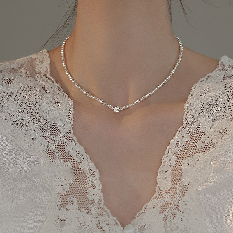 Millet pearl Daisy pearl necklace accessory for women, timeless, versatile for autumn and winter, high-end style, simple collarbone necklace accessory