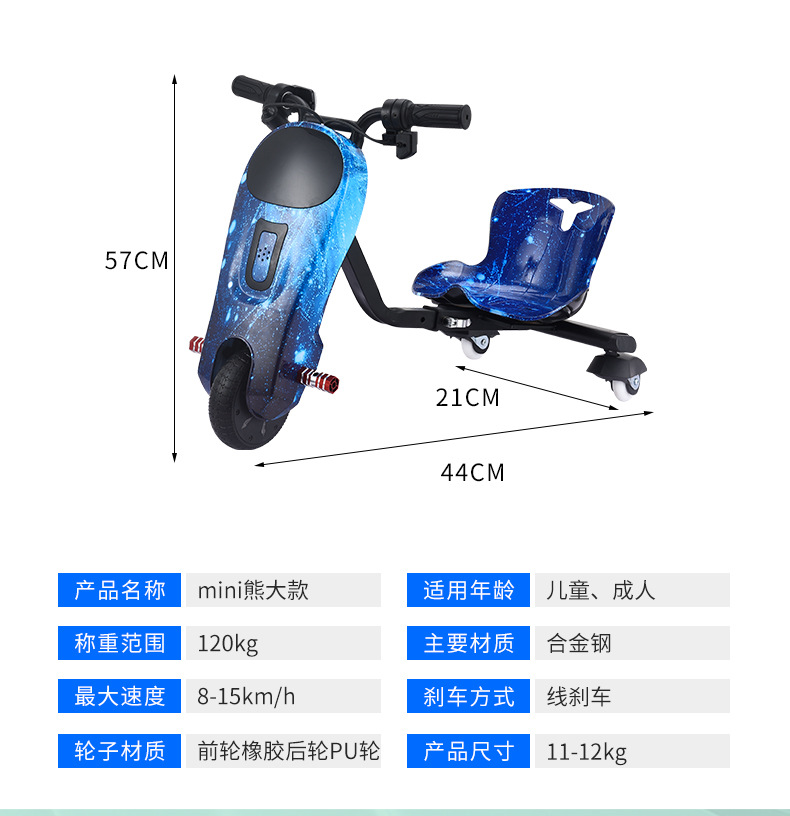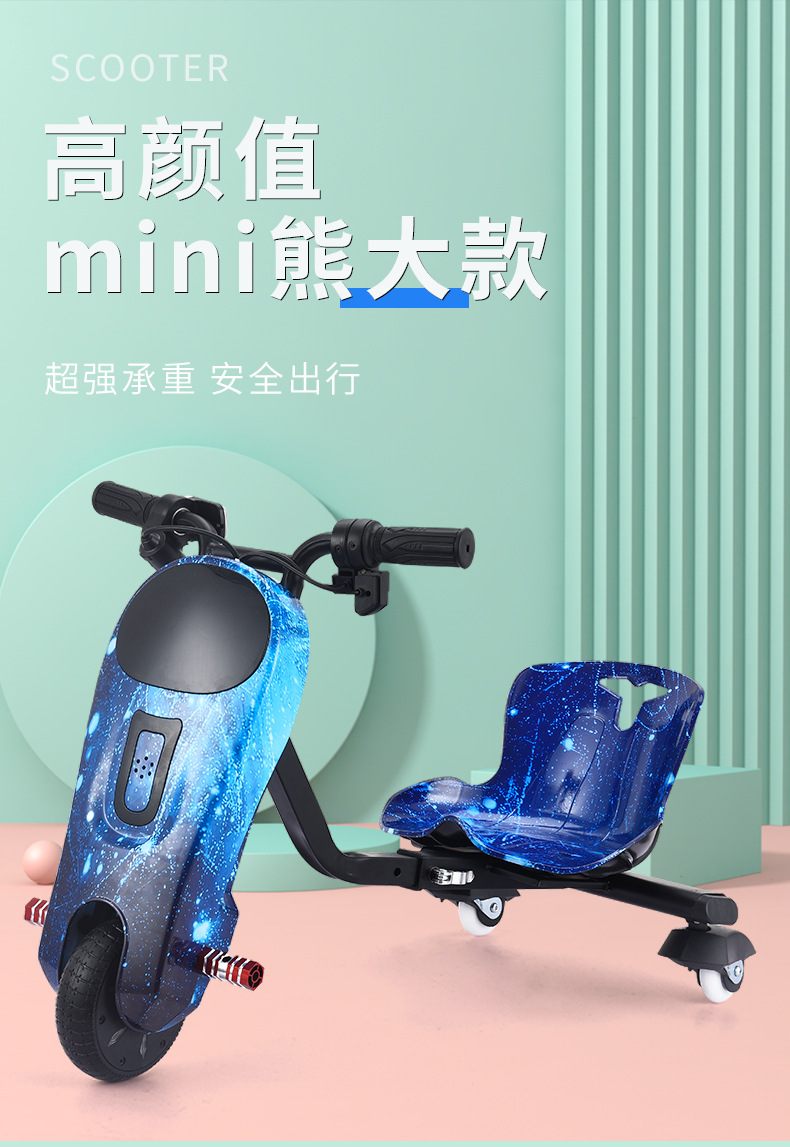 mini Bear Grand Drift Scooter, Electric drift vehicle, Square rental car, children's electric three-wheeled drift vehicle