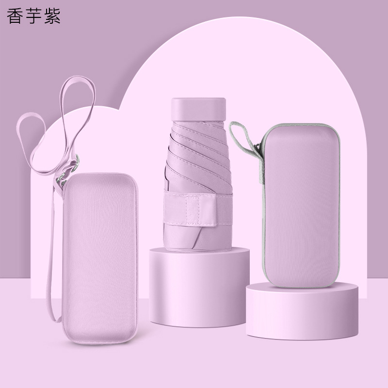 Mini flat umbrella, five-fold umbrella, small pocket card bag umbrella, black rubber sun protection and UV protection sunshade umbrella, all-weather umbrella