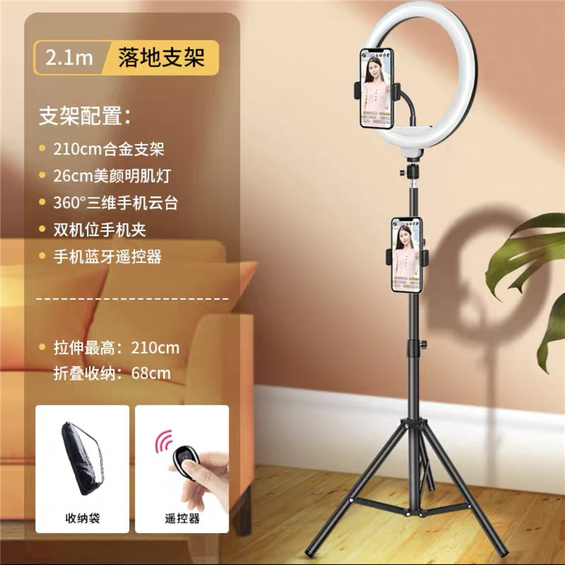 2.1-meter tripod [multi-angle horizontal and vertical shooting] + phone holder + head + storage bag +26cm fill light + additional camera position + camera kit