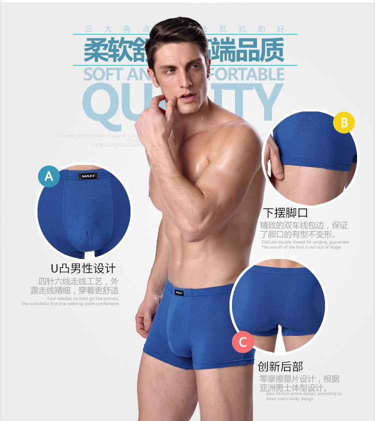Modal men's underwear: Loose soles for men, mid-waist breathable, flat-leg pants, short four-corner underpants for men, middle-aged, elderly and young