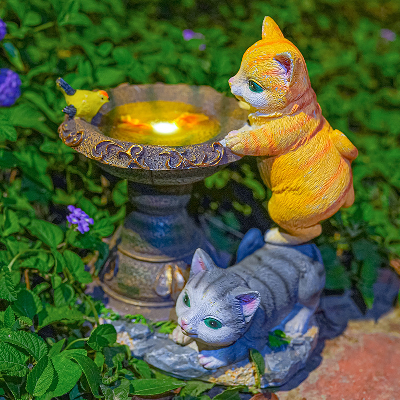 Model 104229: Courtyard decoration, layout and landscaping, kitten ambient light, floor-standing decorative item, villa balcony, garden, lawn, animal decoration