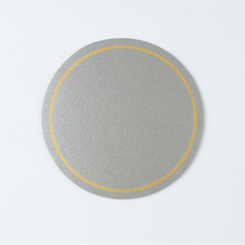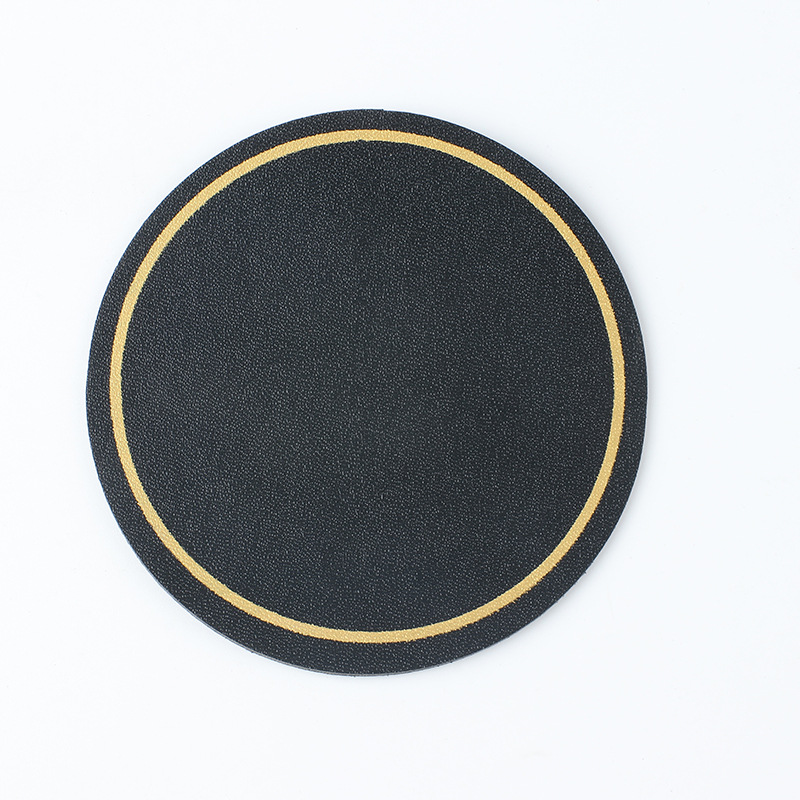 Modern and simple 10X10PVC leather anti-slip and heat-insulating coasters with gold edges, constant temperature round coasters in stock for wholesale