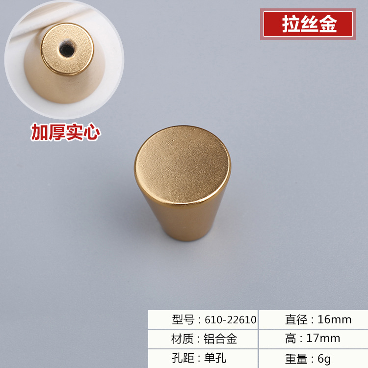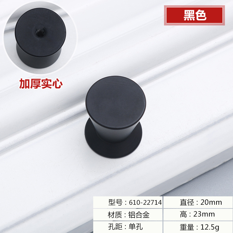 Modern and simple aluminum alloy single-hole golden small handle, black round cabinet drawer solid copper brushed handle