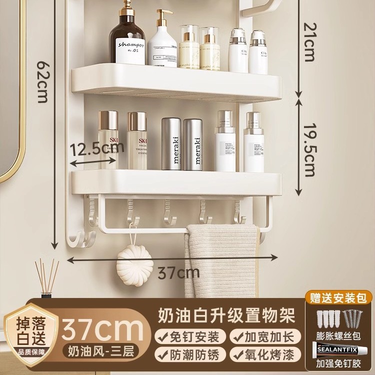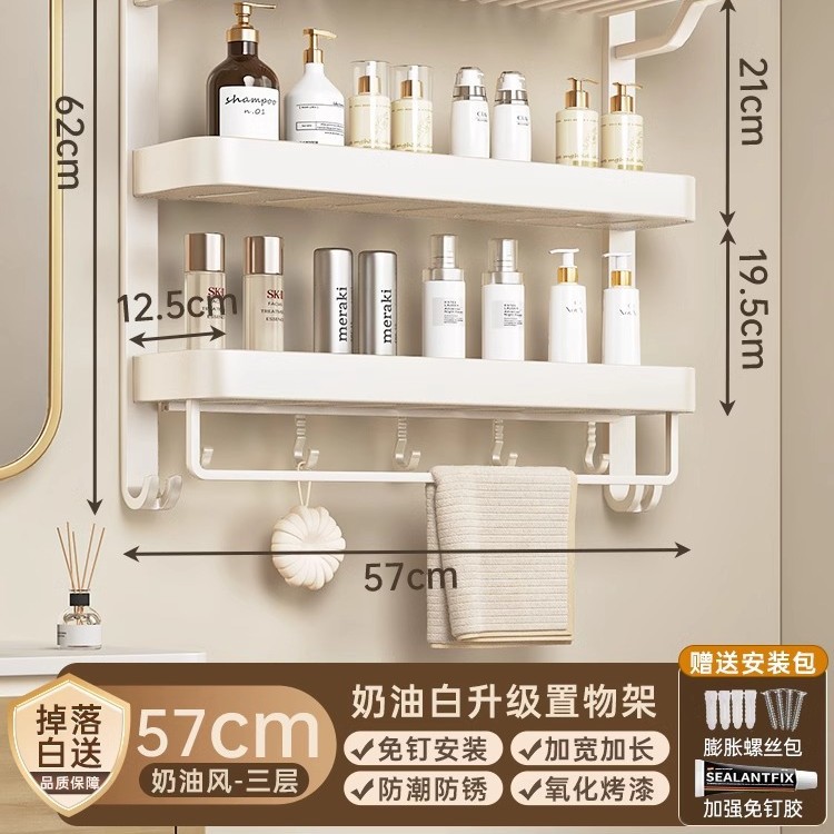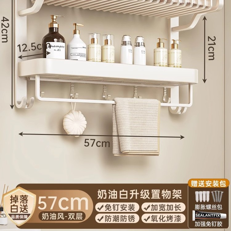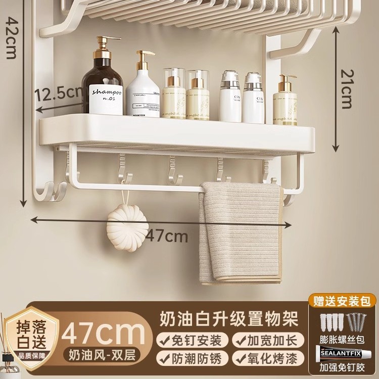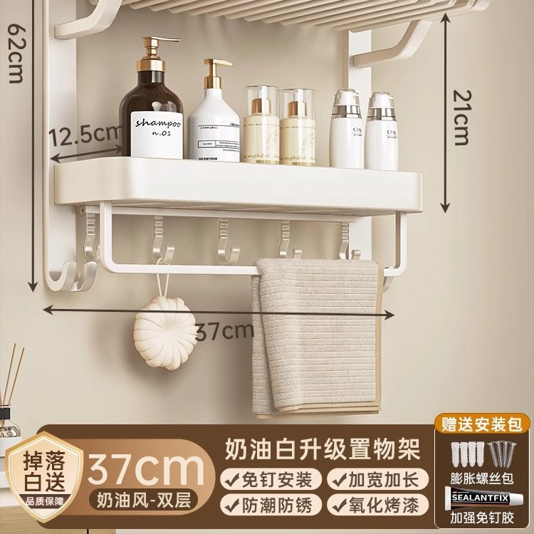 Modern and simple bathroom towel rack, storage rack, washbasin, bathroom, toilet, non-drilling storage rack with hooks and rods