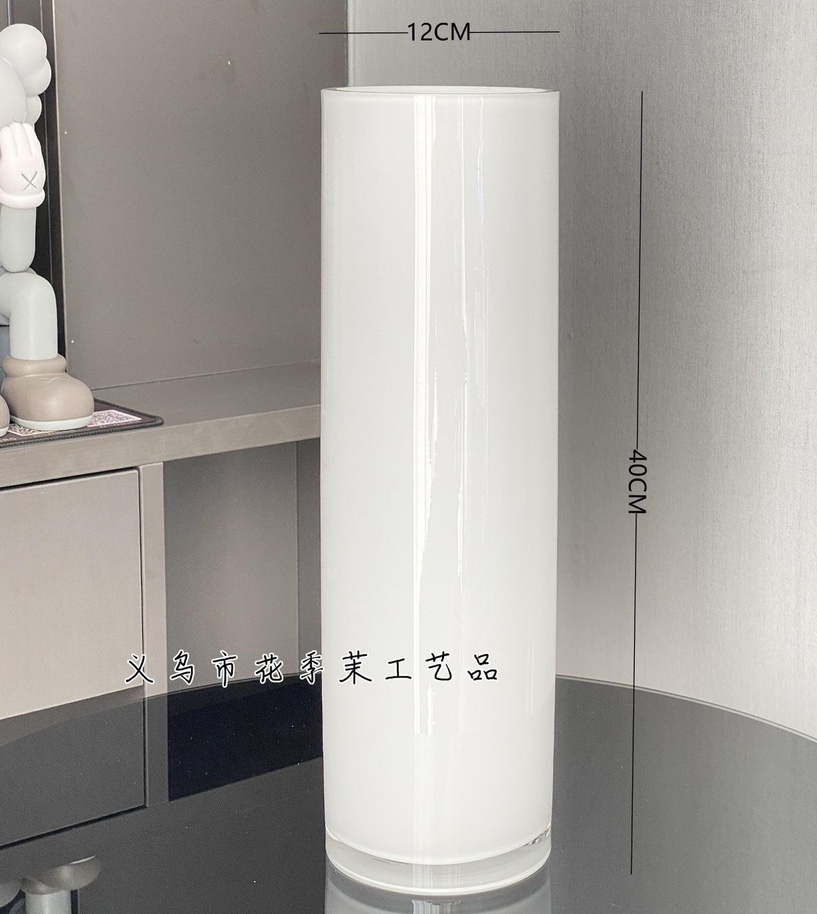 Modern and simple white straight glass vase, a decorative item for home, living room and hotel flower arrangement
