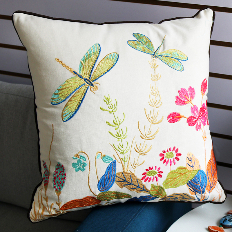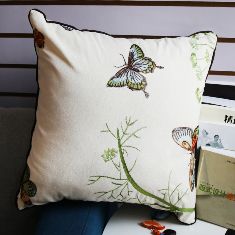 Modern European court-style embroidered butterfly throw pillows, model room sofa, cotton and linen backrest cushions, dragonfly country-style soft packaging