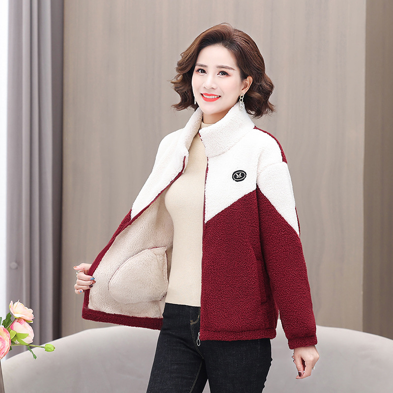 Mom's Autumn and winter granular fleece top 2022 new style for middle-aged and elderly women's cotton-padded clothes with fleece and thickening, large-sized fleece jacket