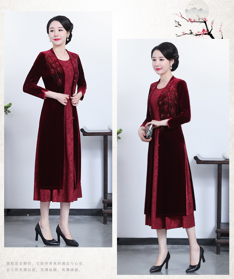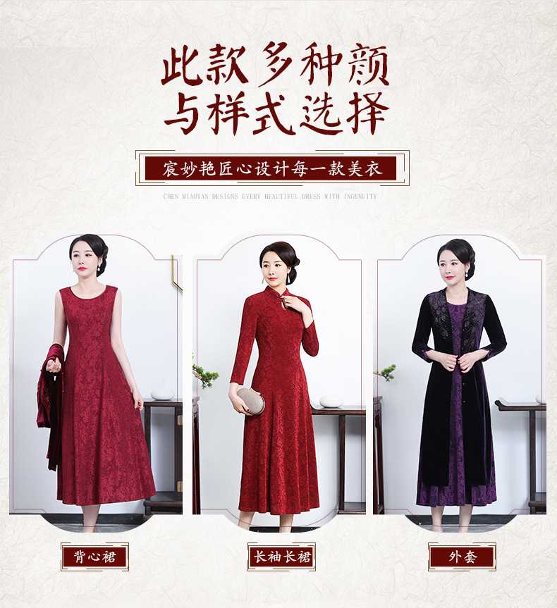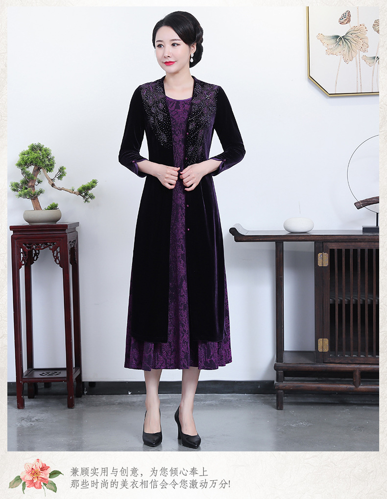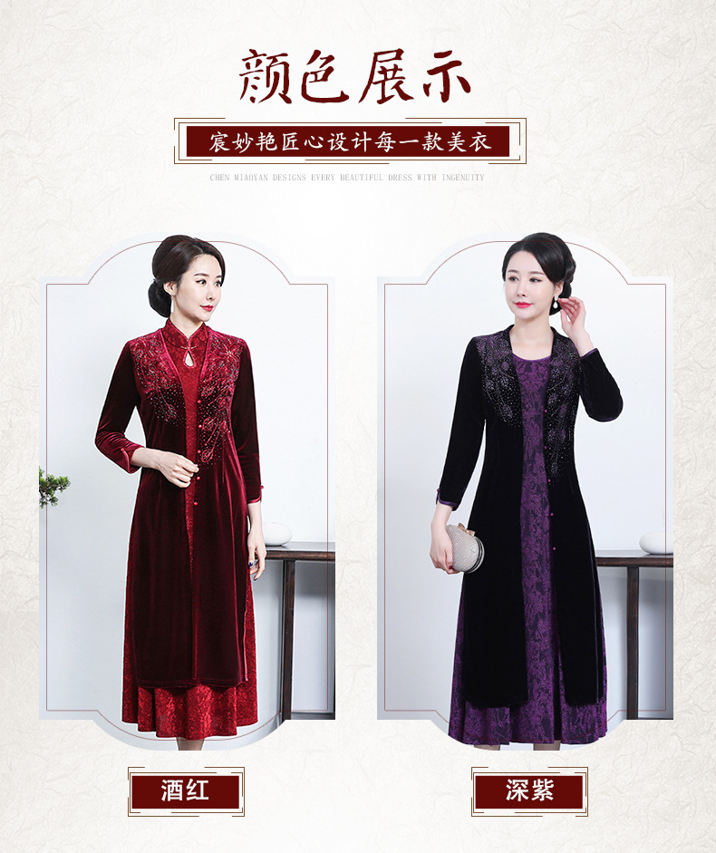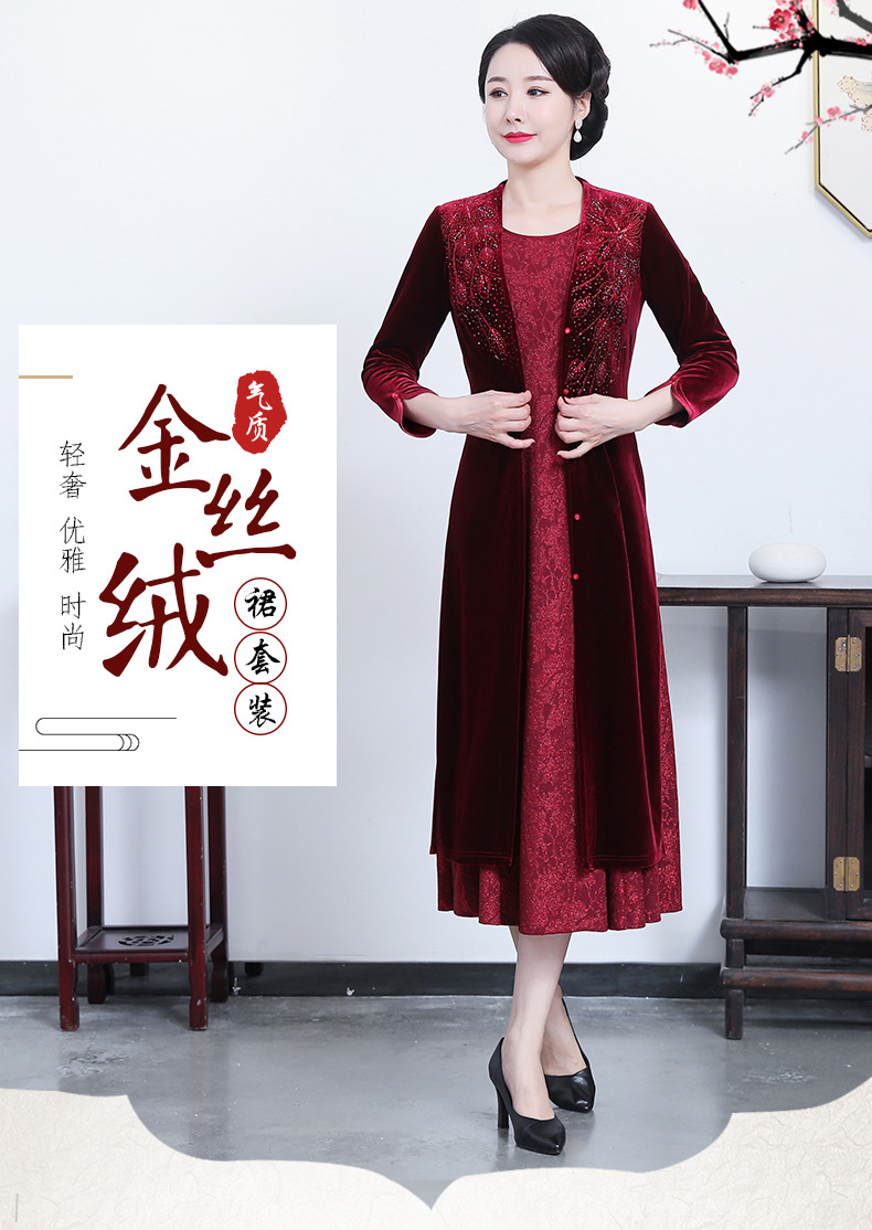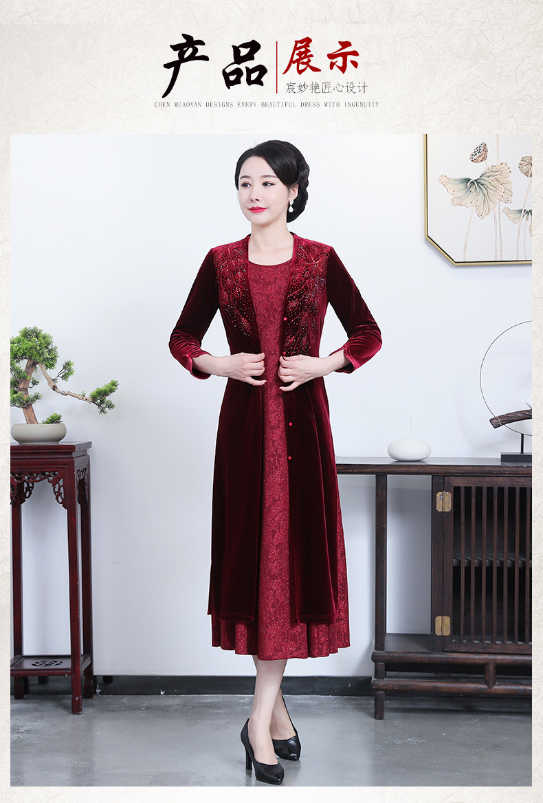 Mom's autumn and winter stylish velvet dress, wedding dress, Grandma's wedding banquet set, middle-aged and elderly women's clothing