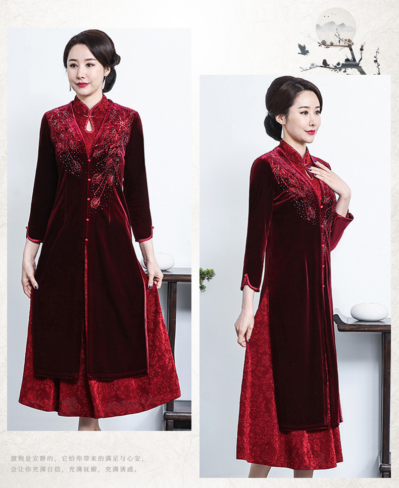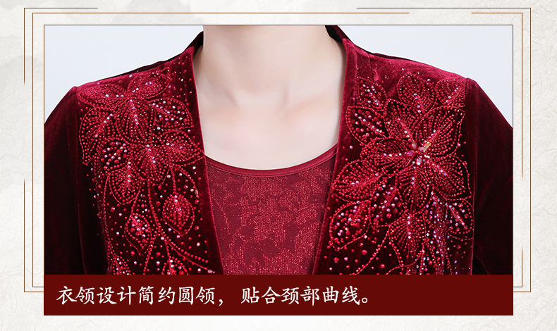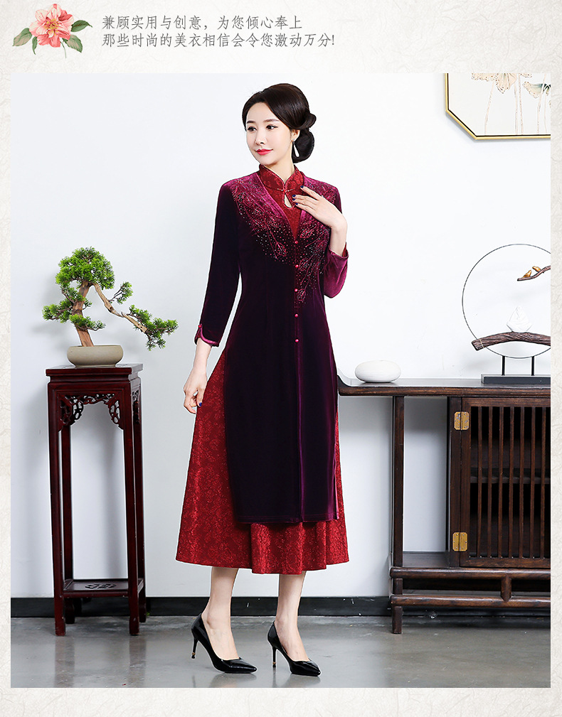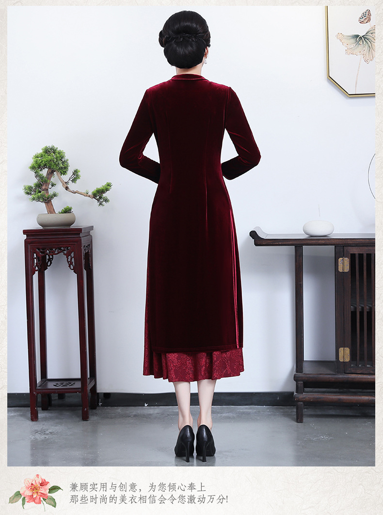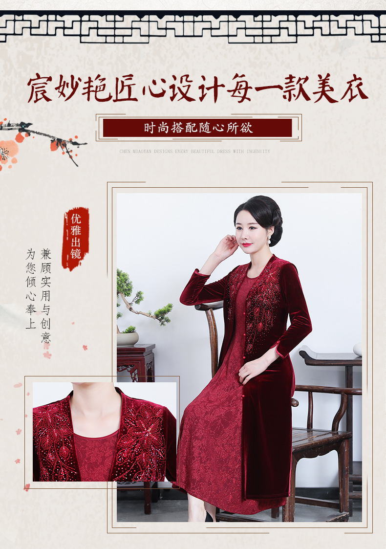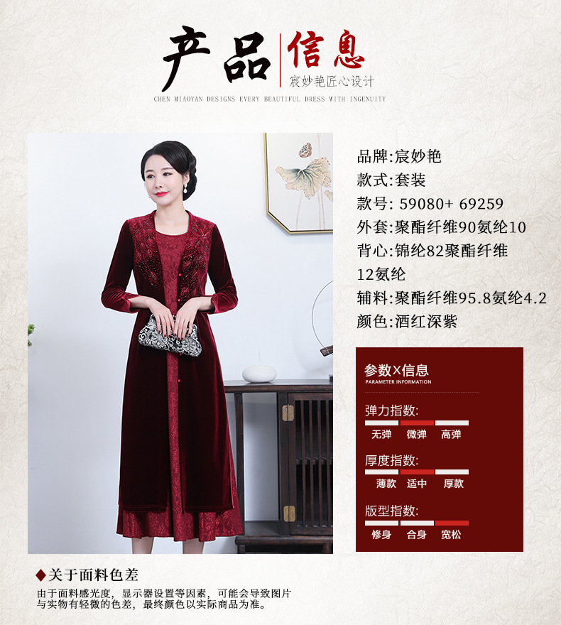 Mom's autumn and winter stylish velvet dress, wedding dress, Grandma's wedding banquet set, middle-aged and elderly women's clothing