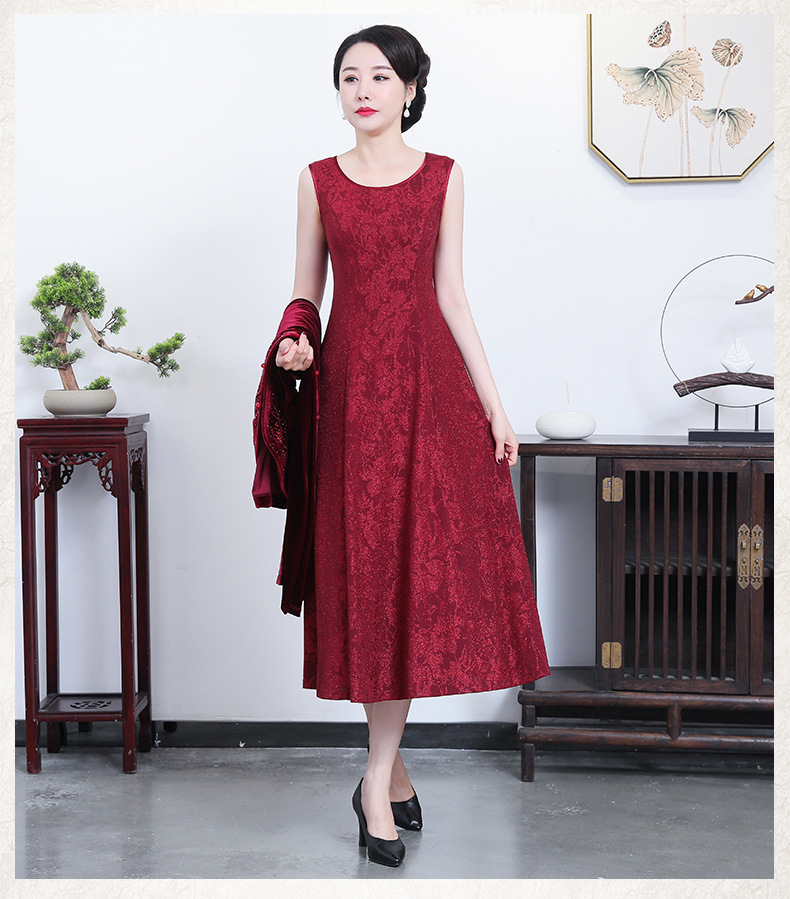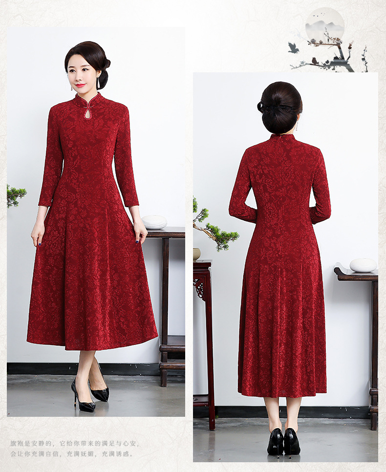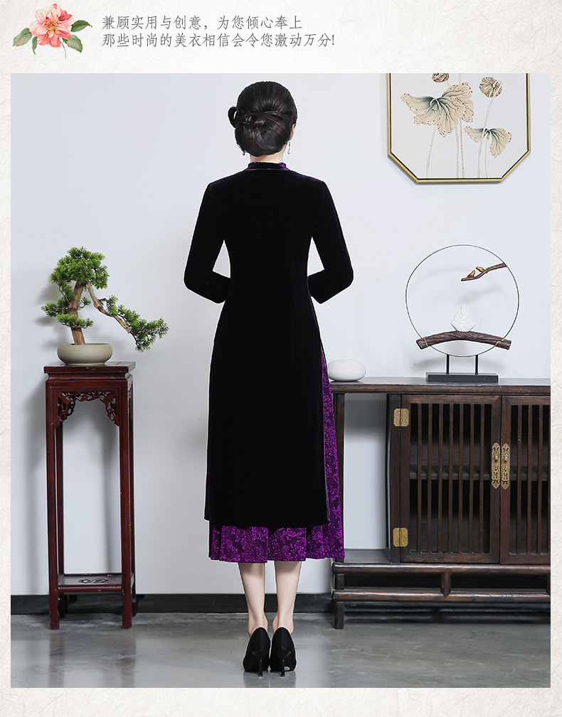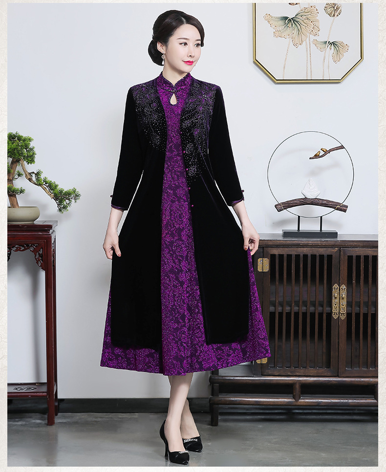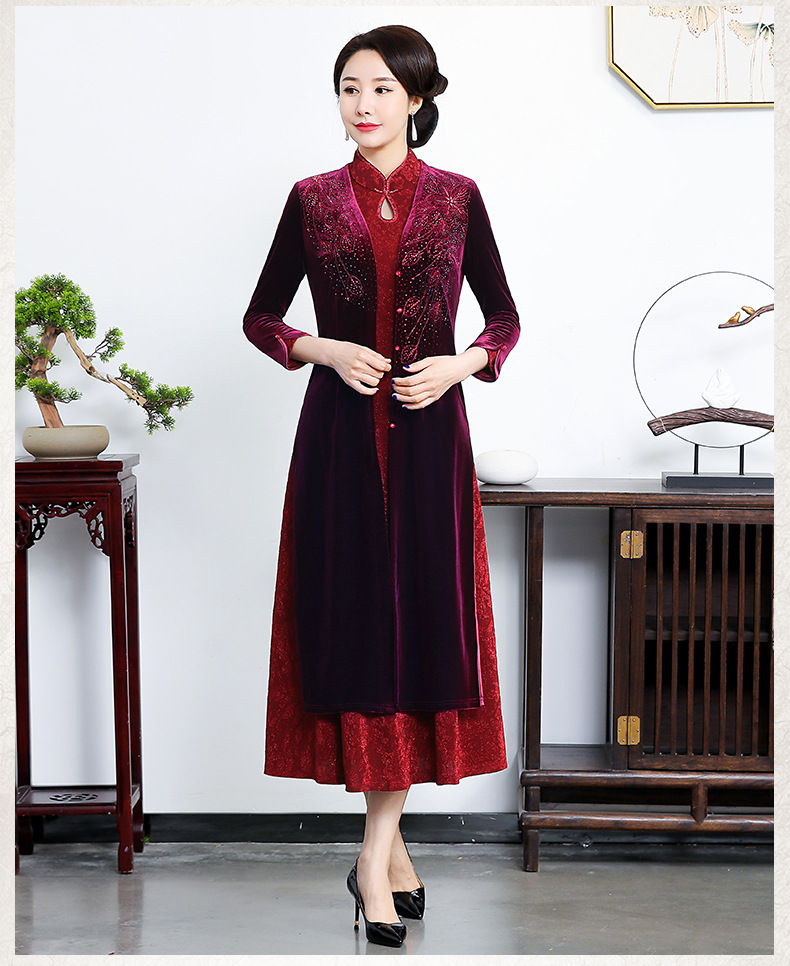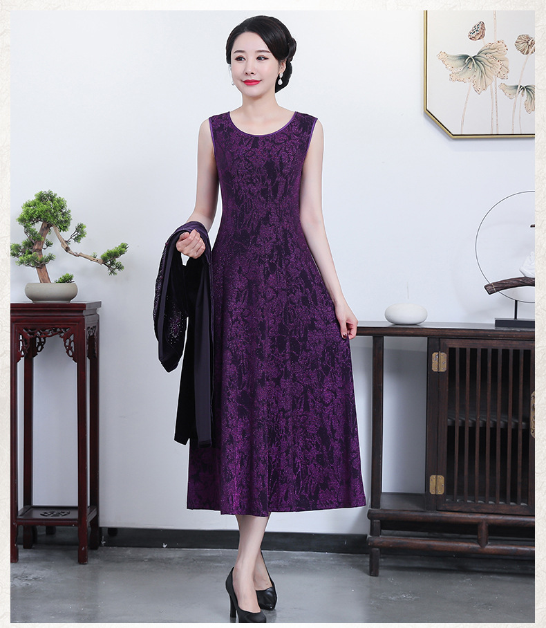 Mom's autumn and winter stylish velvet dress, wedding dress, Grandma's wedding banquet set, middle-aged and elderly women's clothing