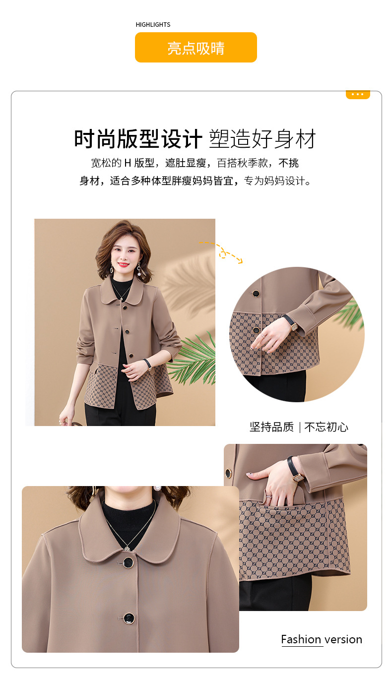 Mom's autumn stylish and fashionable coat, a thin and elegant trench coat for middle-aged and elderly people, 2022 new style of middle-aged autumn cardigan for women