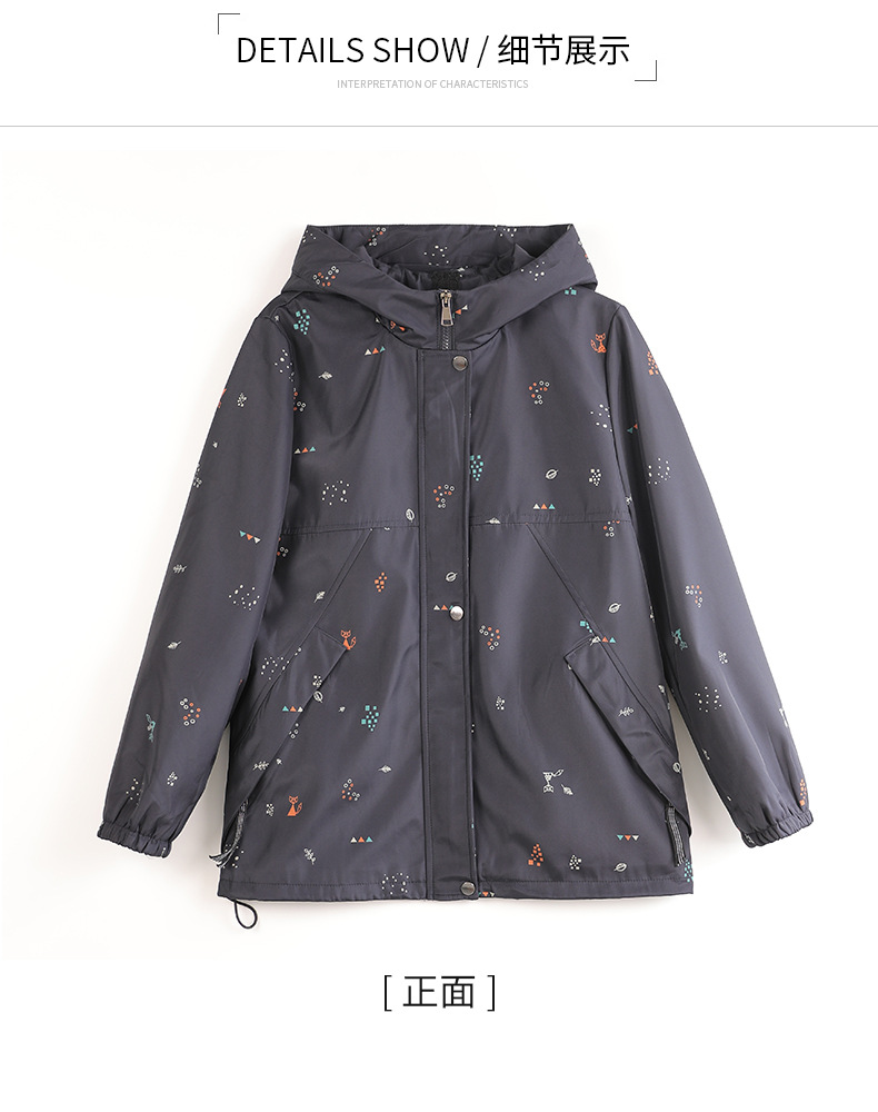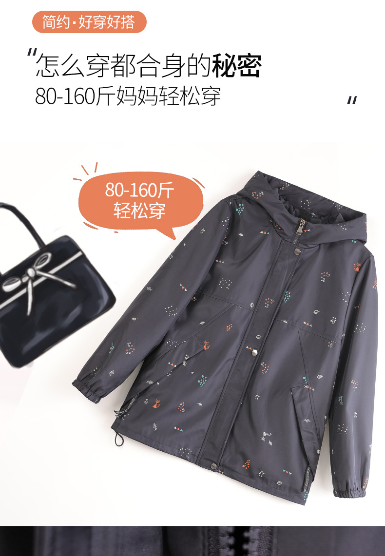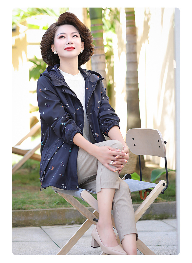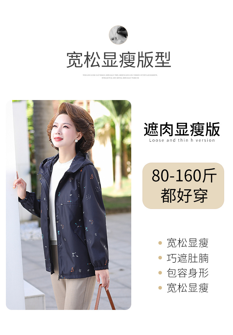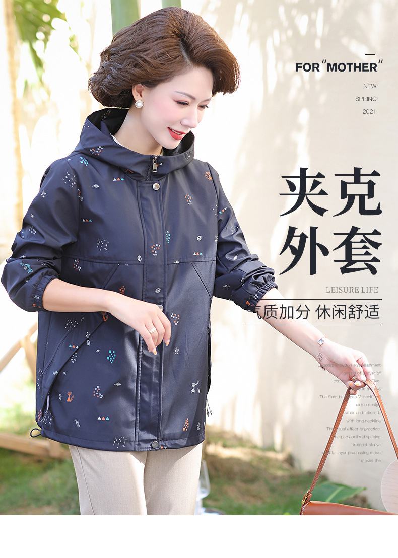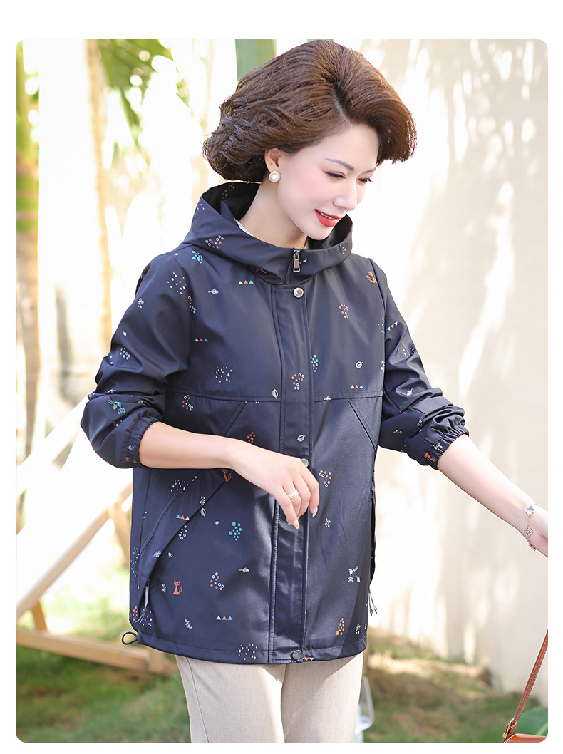 Mom's new autumn trench coat, middle-aged hooded, slimming, large-sized floral casual jacket, top for middle-aged and elderly women