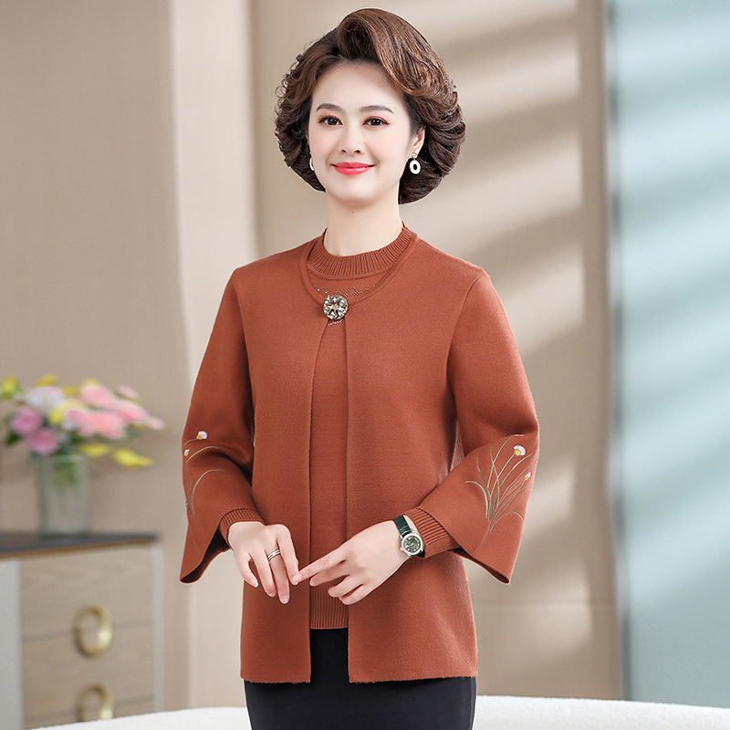 Mom's knitwear two-piece set 2023 Autumn Loose solid color base layer sweater sweater, versatile knitwear for women, middle-aged and elderly