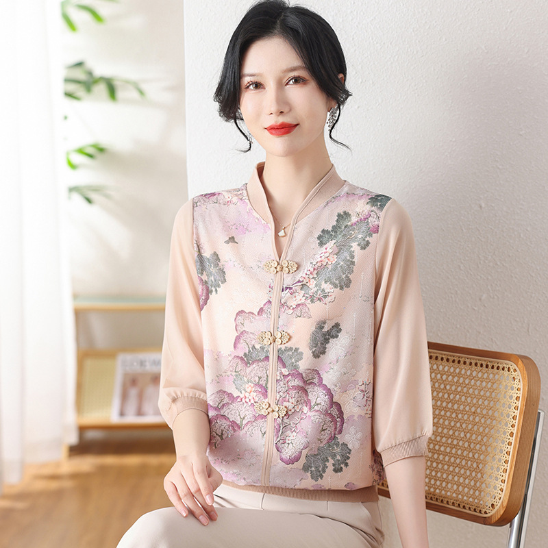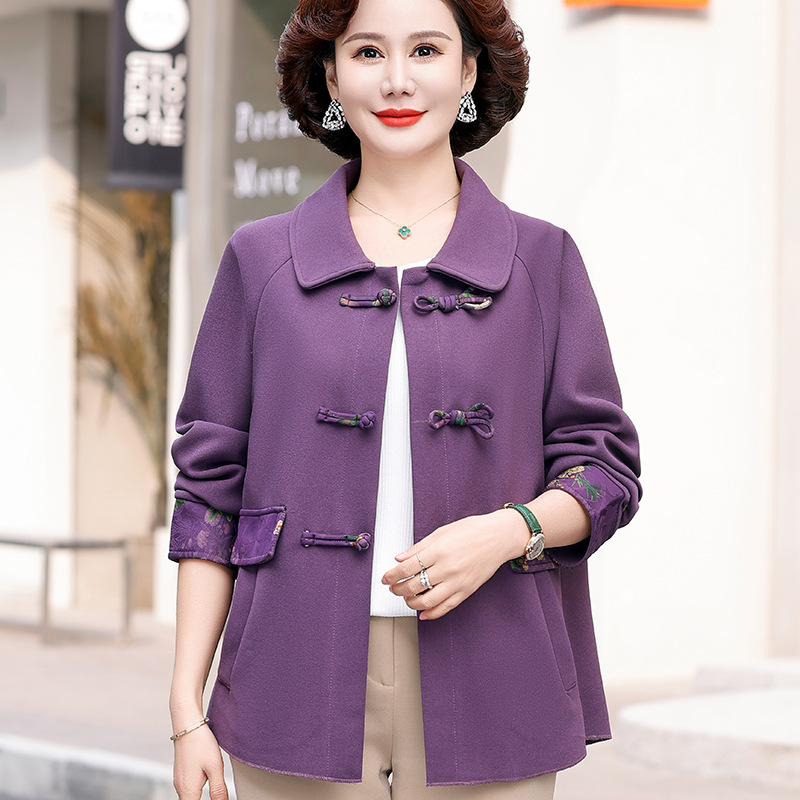 A new and stylish spring coat for middle-aged mothers with a traditional Chinese style. A large-sized, loose top for middle-aged and elderly women