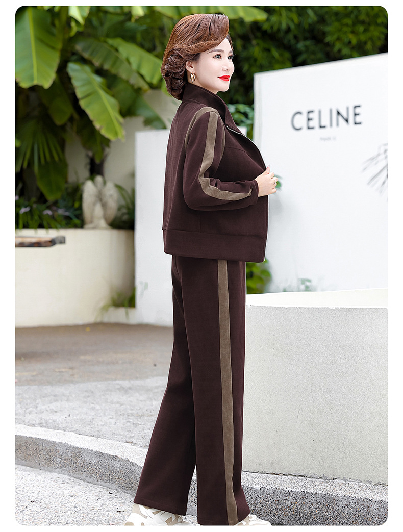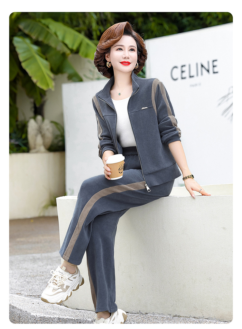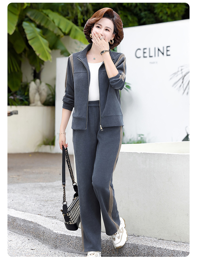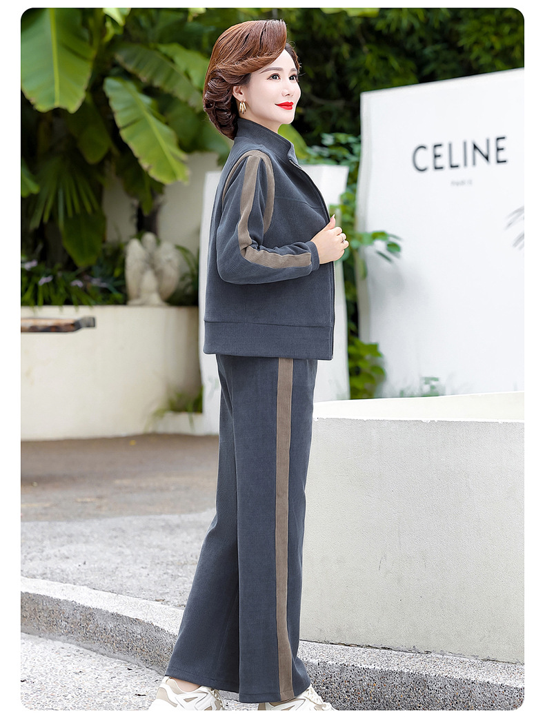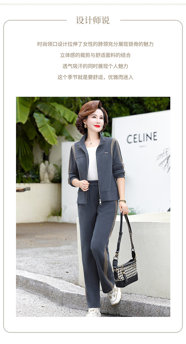 A two-piece cardigan, stylish coat for middle-aged and elderly women, long-sleeved, color-blocked tops for women in spring and autumn