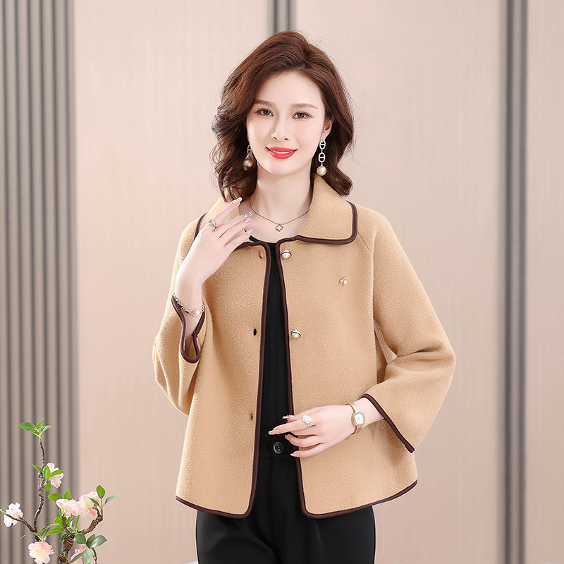 This is a new 2024 casual and versatile short coat for middle-aged and elderly mothers, featuring a solid color lapel and stylish trench coat