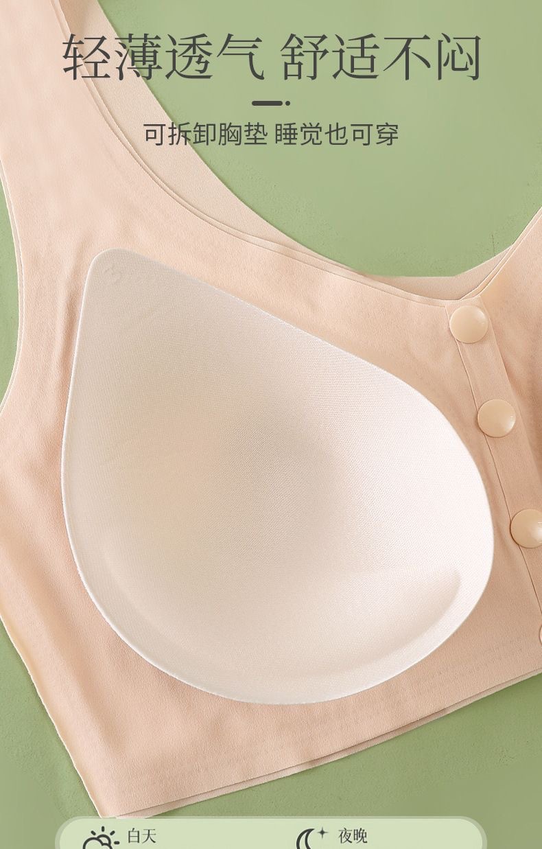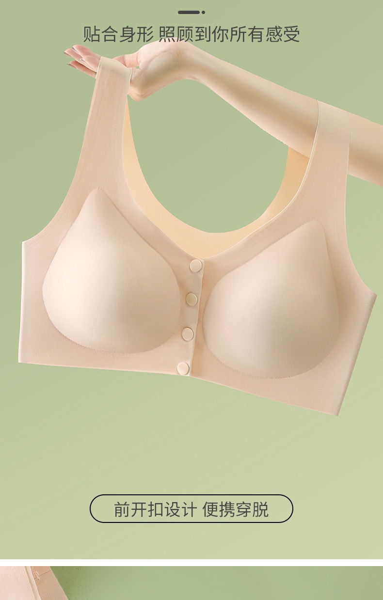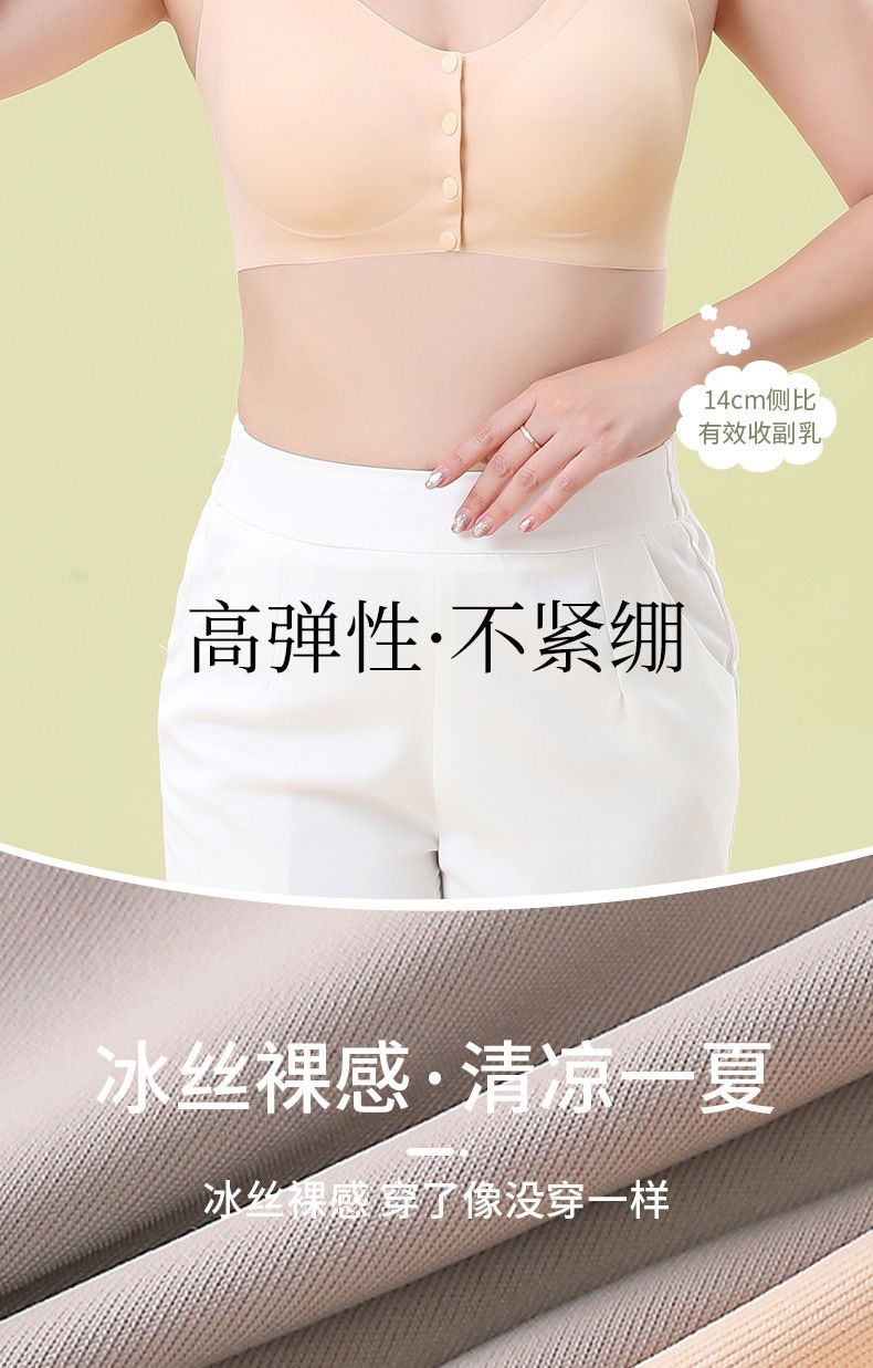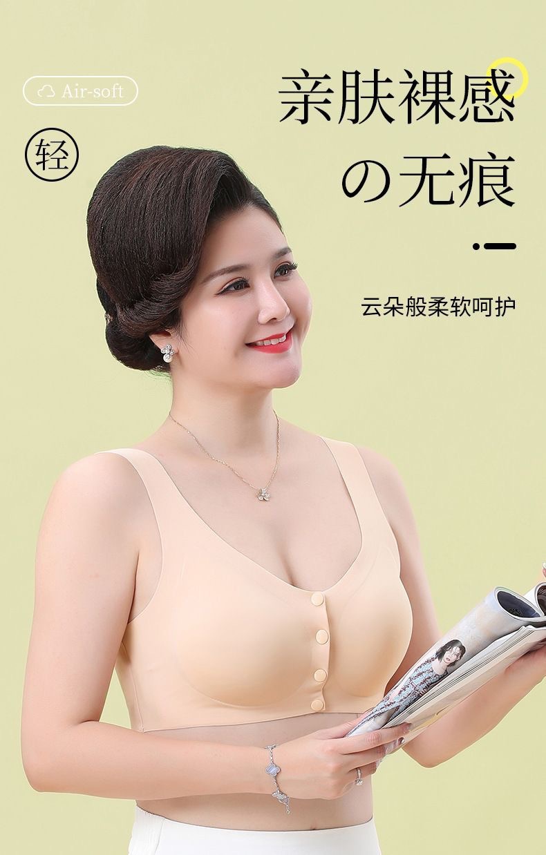 Mom's underwear, women's summer thin vest front-button bra, no underwire bra, traceless, large-sized cotton bra for middle-aged and elderly people