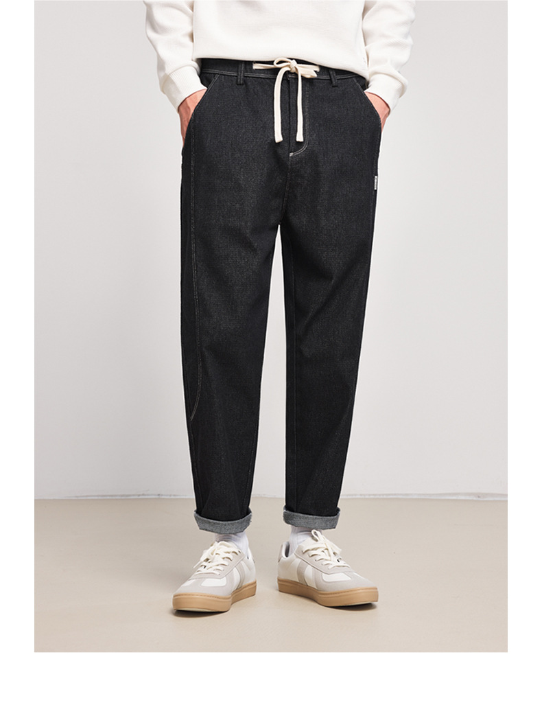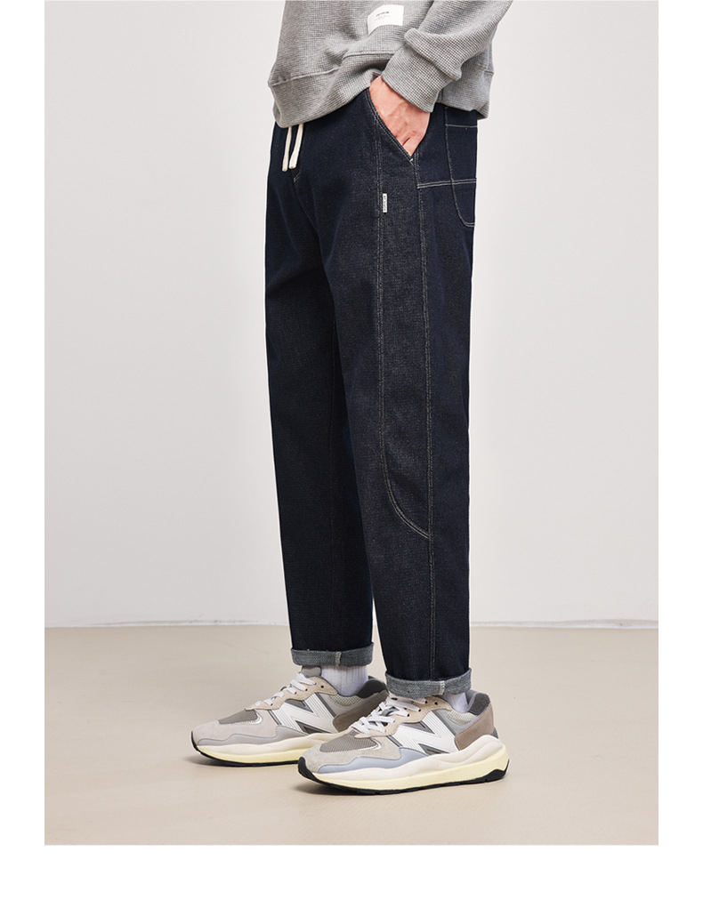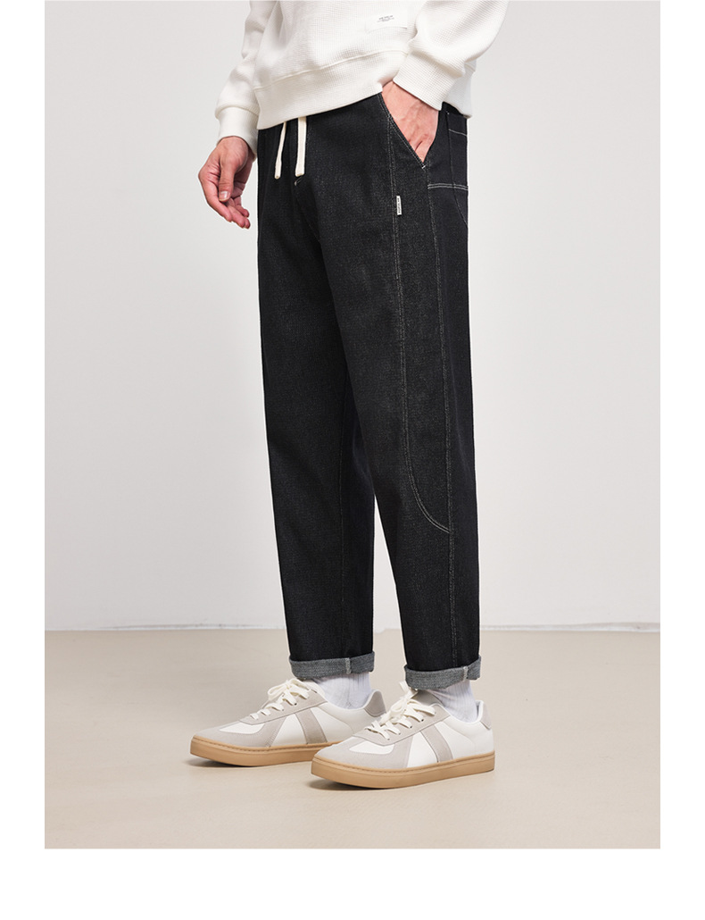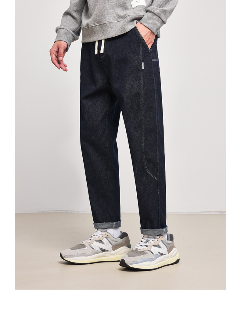 Momeck elastic waist loose denim Pants for Men 2024 Autumn New slightly elastic straight men's long pants 97105