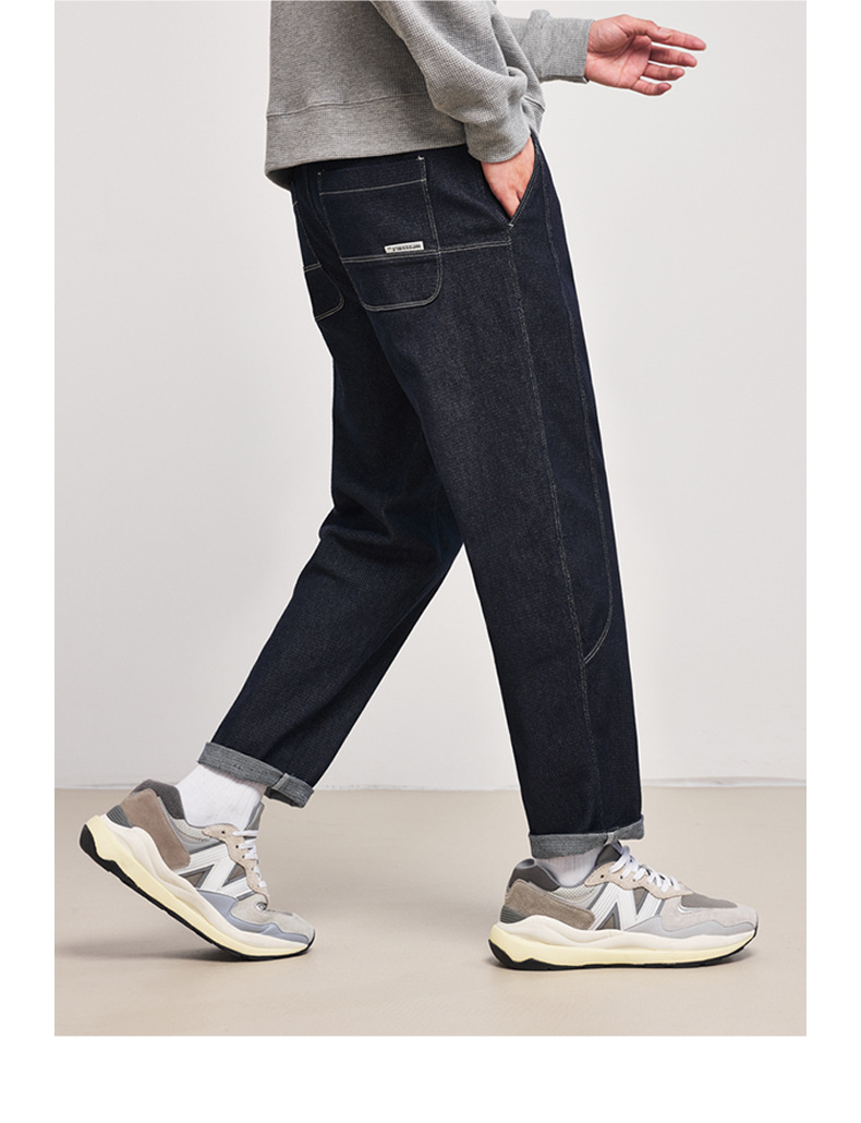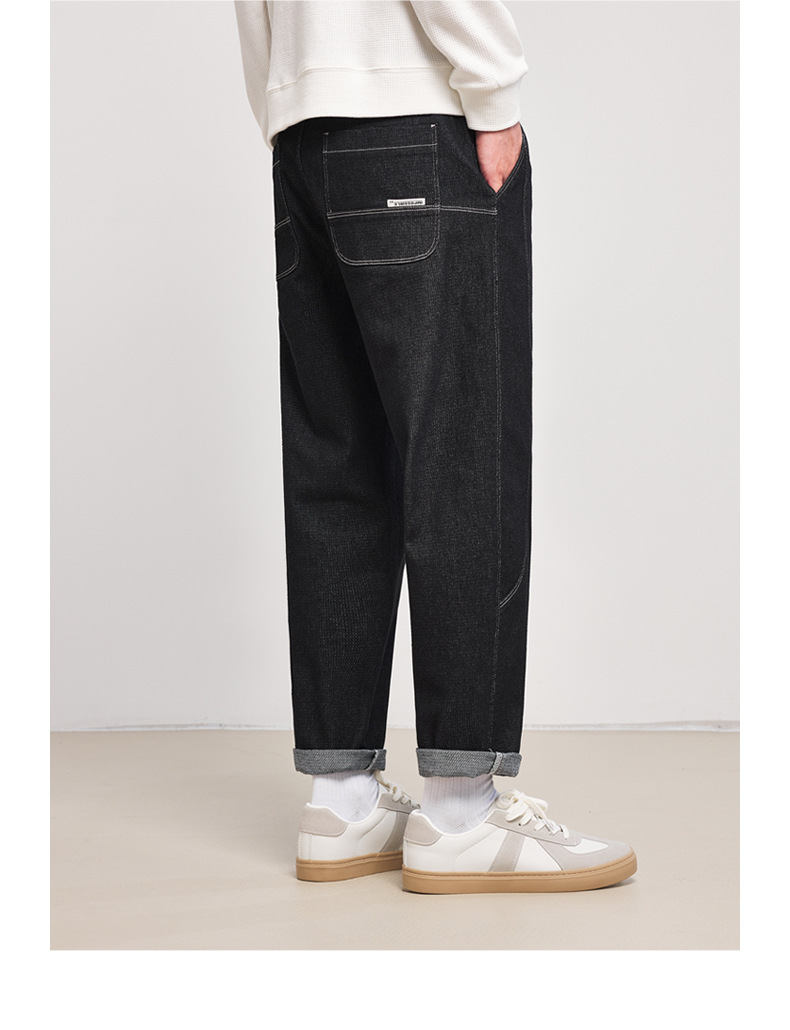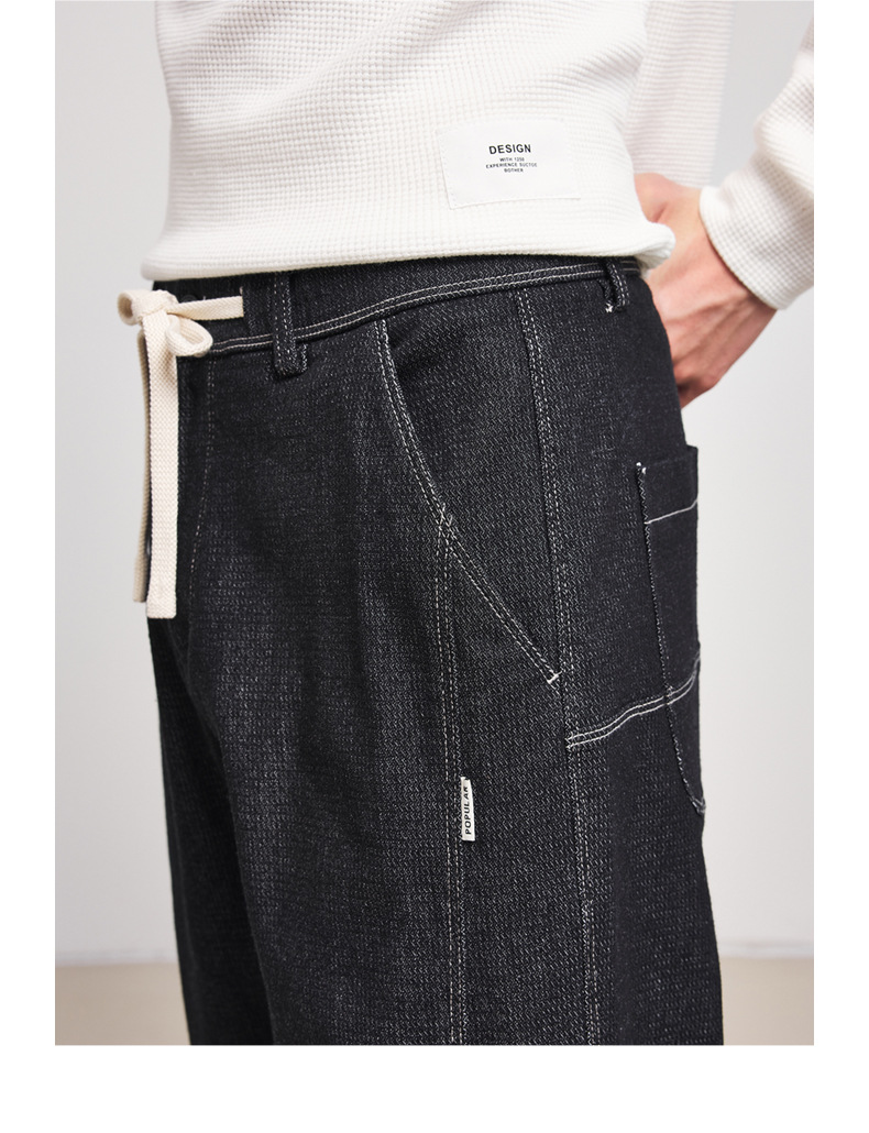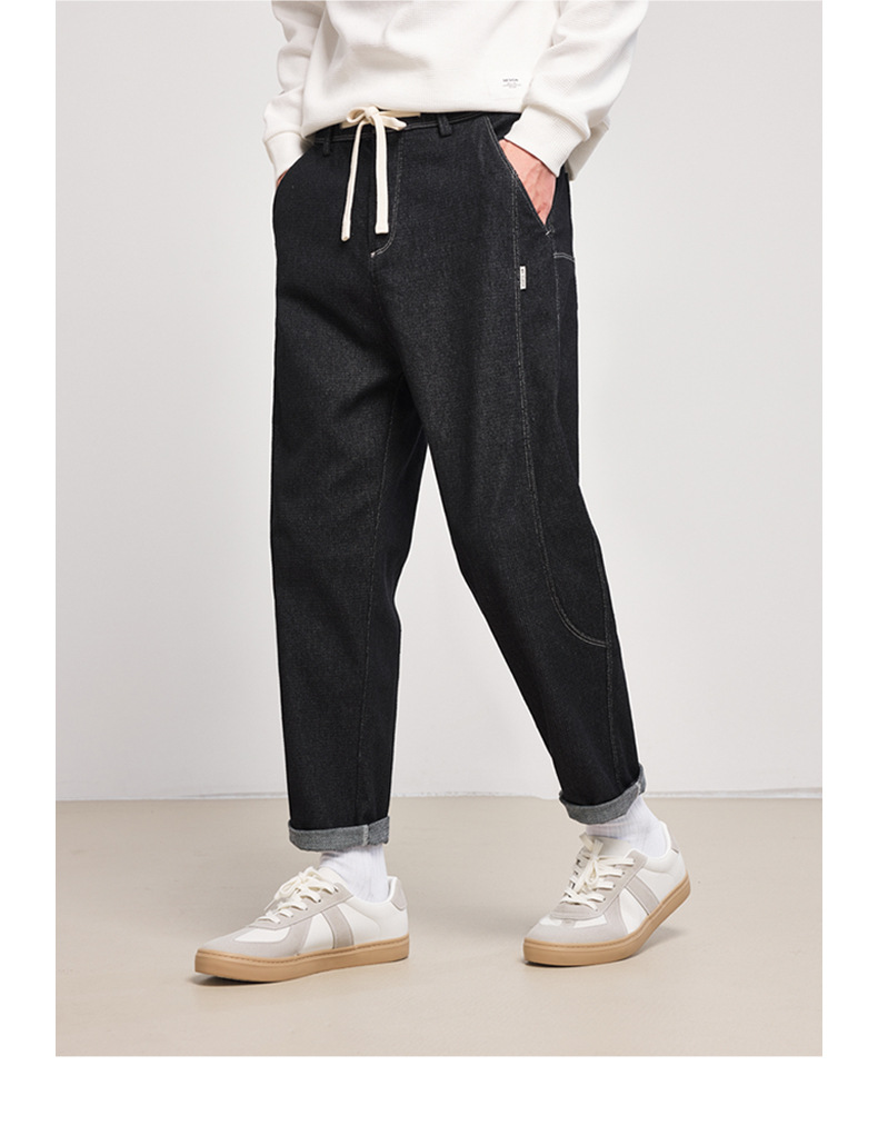 Momeck elastic waist loose denim Pants for Men 2024 Autumn New slightly elastic straight men's long pants 97105